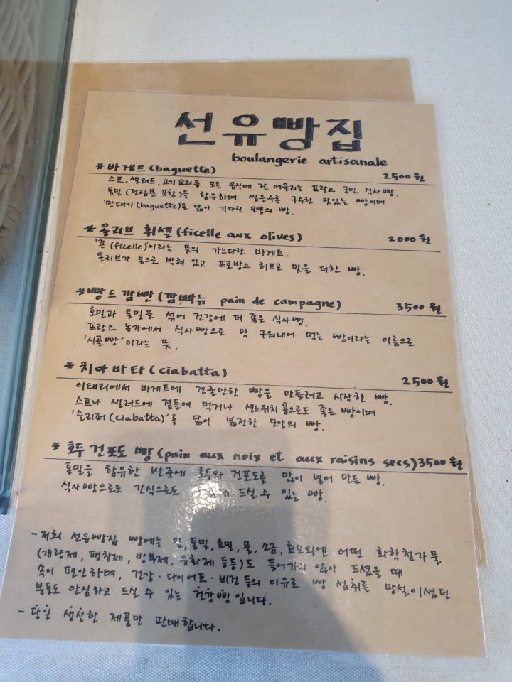 선유빵집 가격 및 메뉴판입니다.