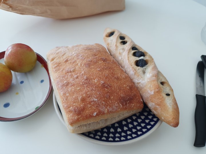 좌) 치아바타. 우) 올리브휘셀