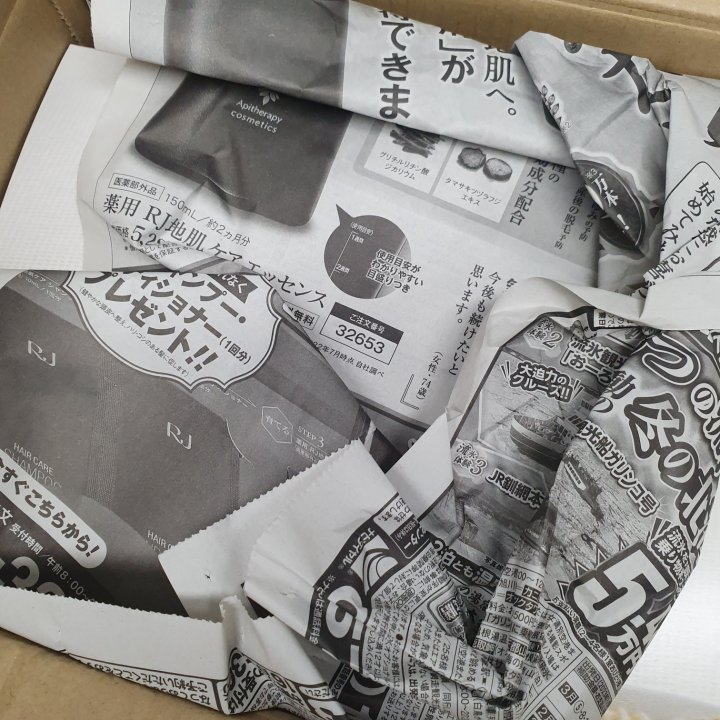 일본에서 온거라 택배 상자안 충격 완화를 신문을 넣어서 꼼꼼하게 포장해주셨더라구요.