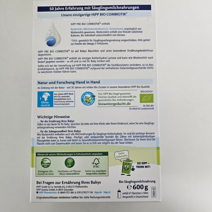 독일 힙 분유와, 오스트리아 힙분유는 종이상자 그리고 비닐백에 들어있는데