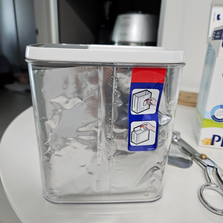 분유봉투를 뜯어서 파우더 통에 넣으면 위 사진처럼 봉투가 튀어나와요.
