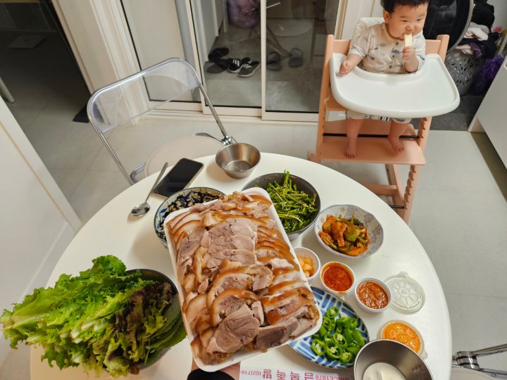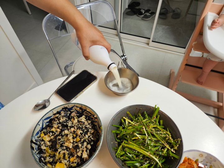 울 애기 떡뻥주고 엄마아빠 한잔해볼게.