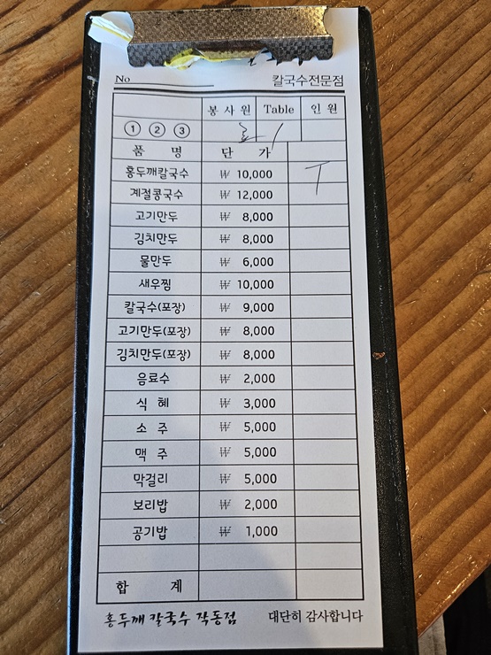 저희 부부는 칼국수 2인분에 손만두 하나 시켰습니다.