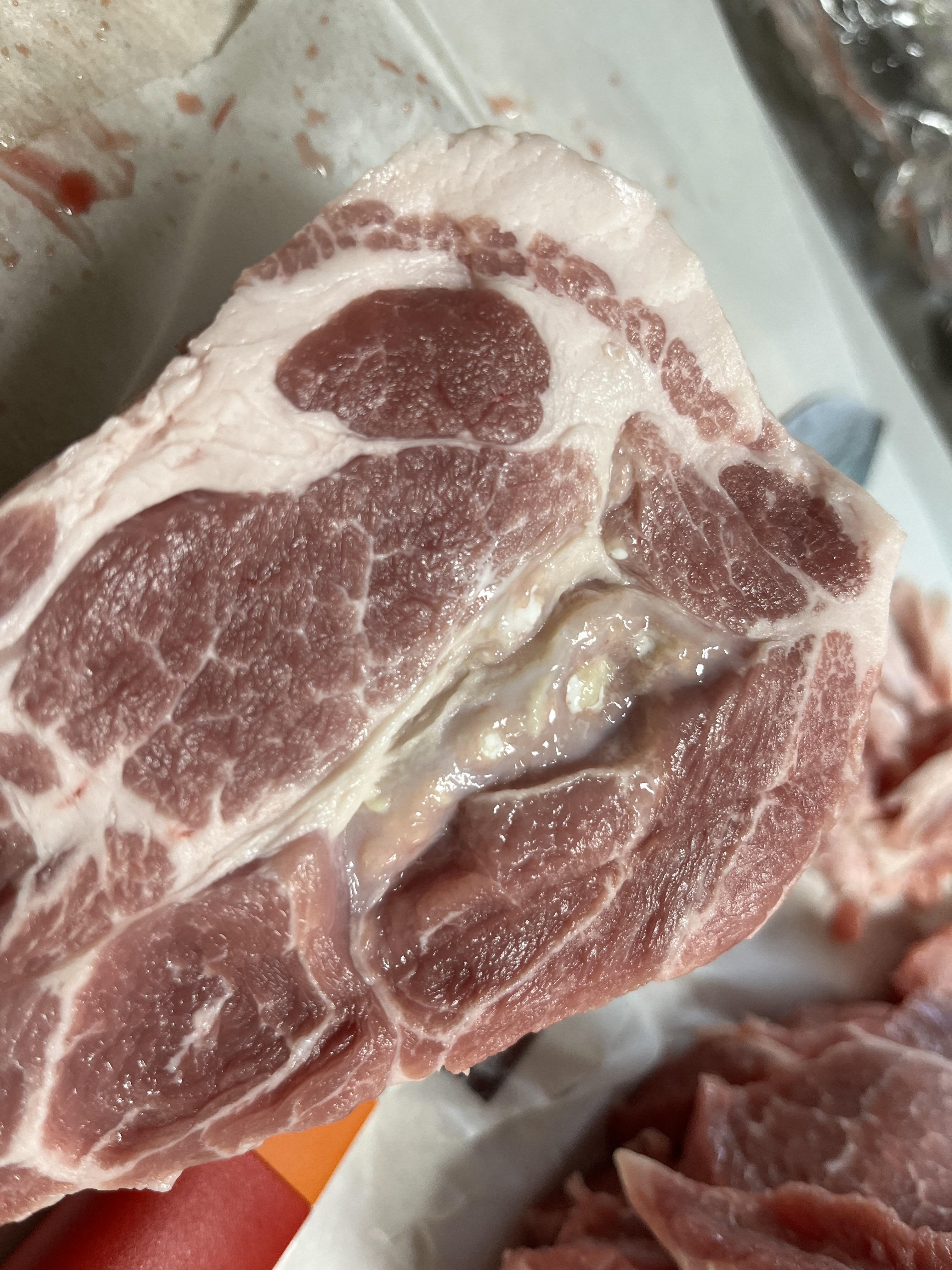 이번처럼 목살 고름, 목살 농이 있는 돼지고기를 접하게 된 것은 처음입니다.