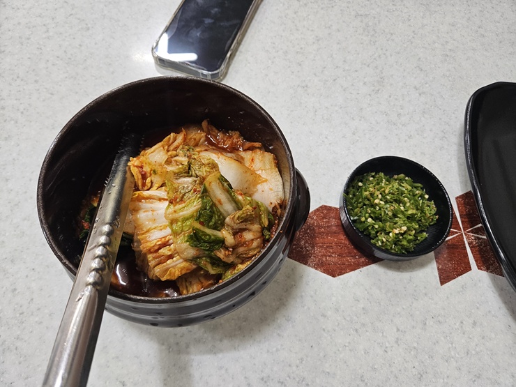 직접 담군 김치.