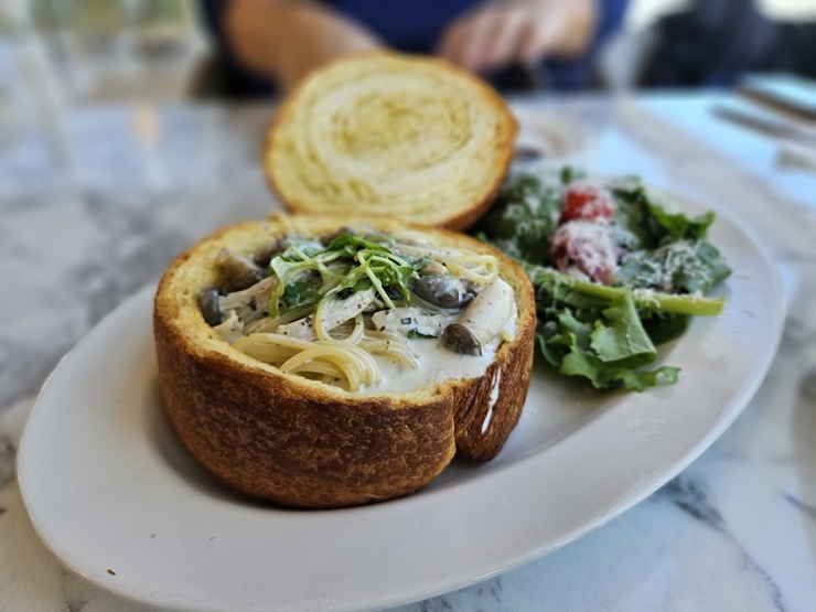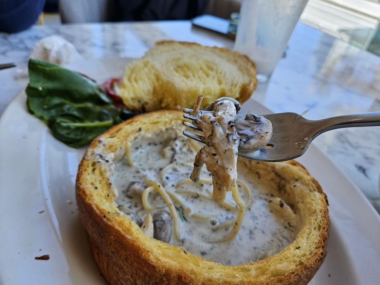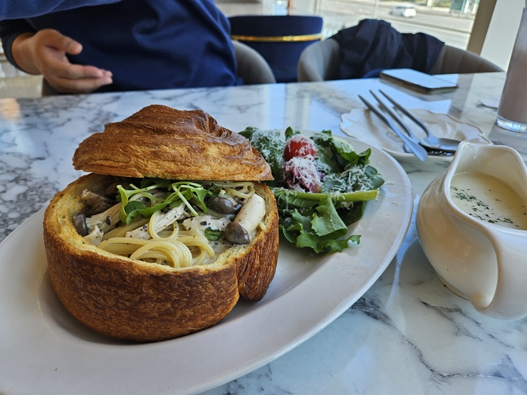 넉넉하게 들어간 머쉬룸과 추가로 따로 제공된 크림소스.