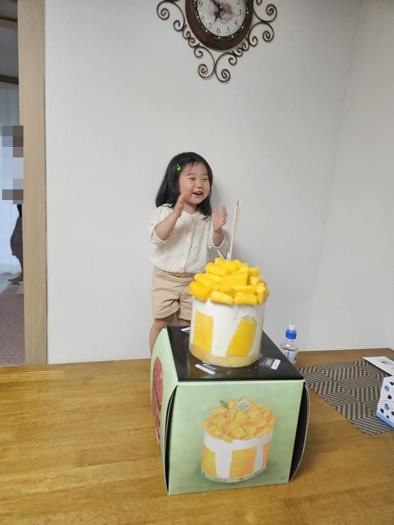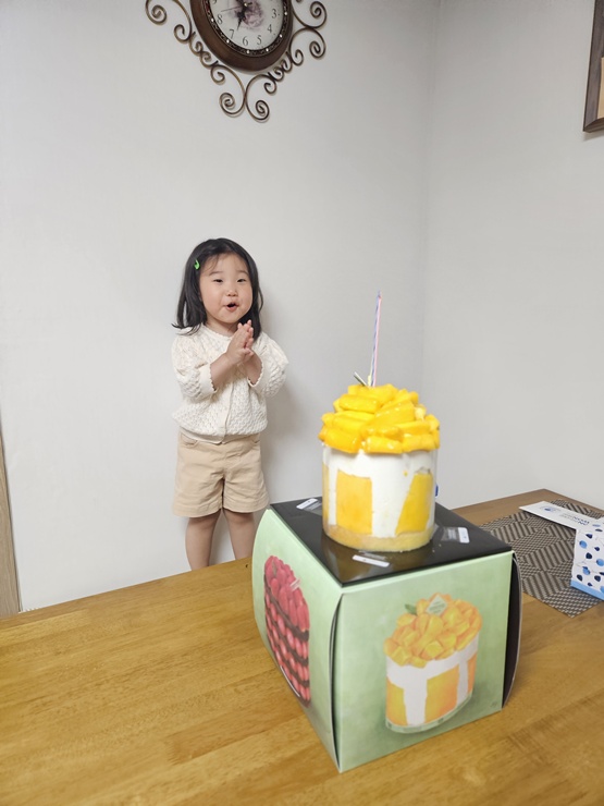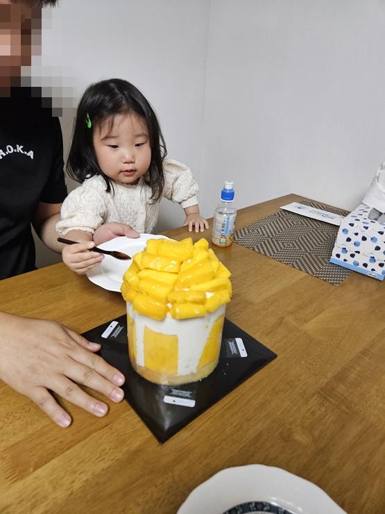신나버린 우리 지윤이와 성심당 망고시루.