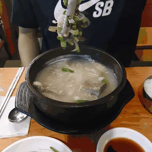 기호에 맞게 파를 각자 탕에 넣어준다.