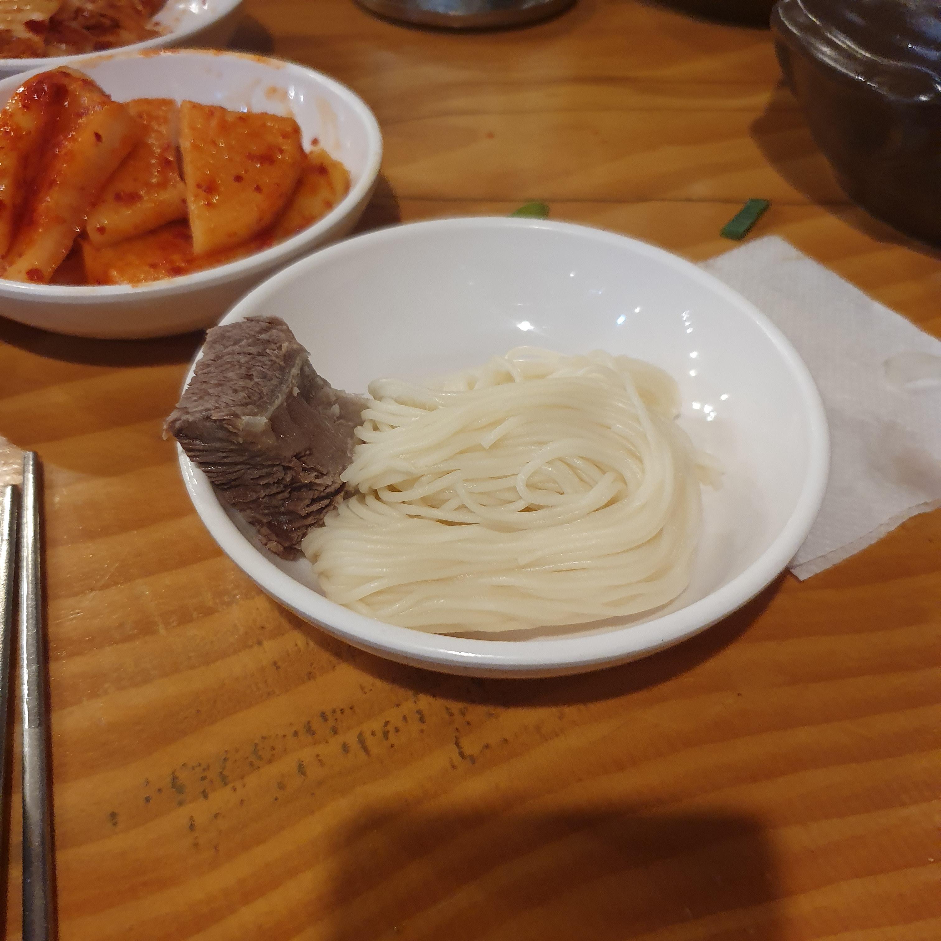 설렁탕에는 소면이 나오는데, 말을 안하면 넣어서 주는 것이 기본이여서 따로 접시에 담아달라고 했다.
