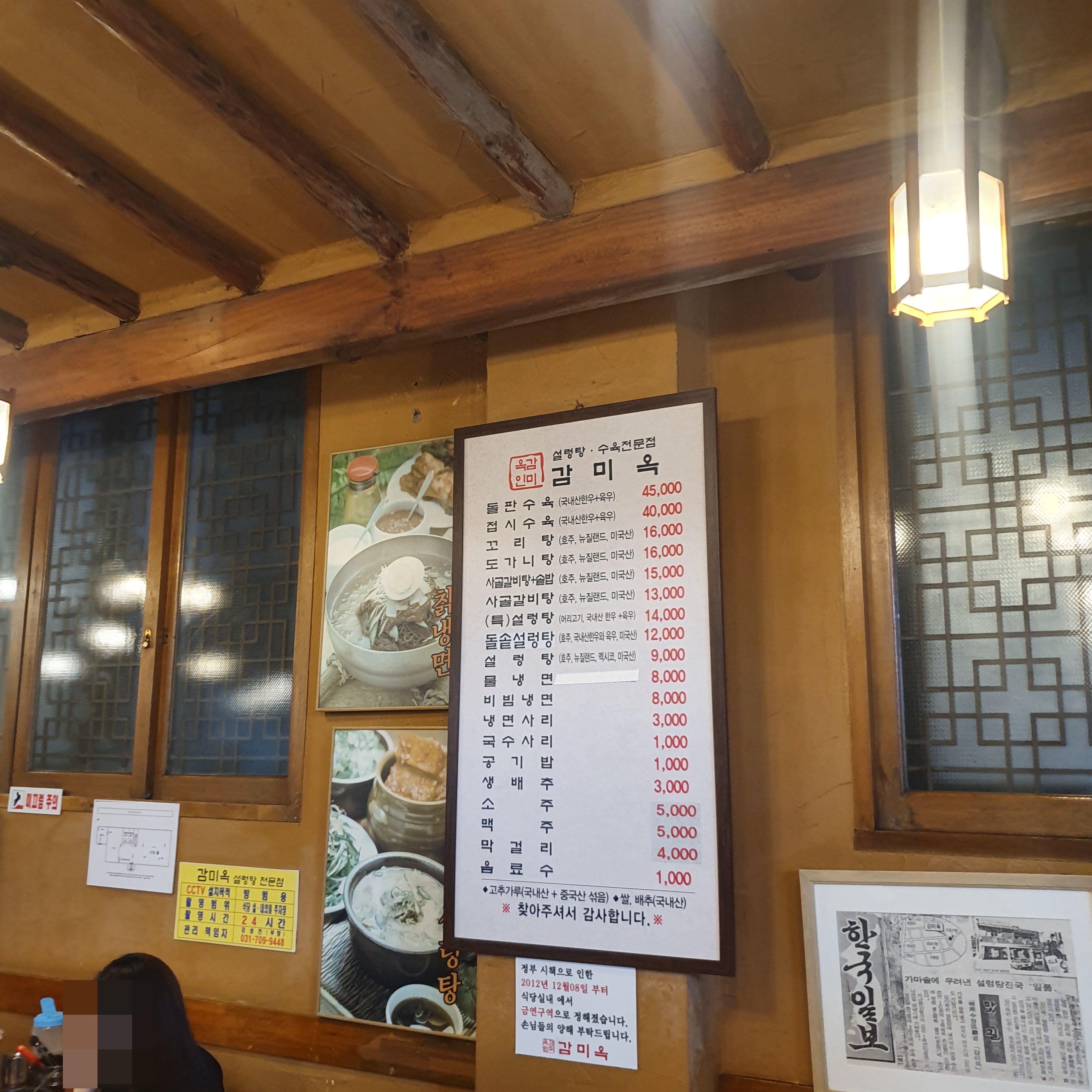 분당 설렁탕, 수육 전문점 감미옥 가격 및 메뉴