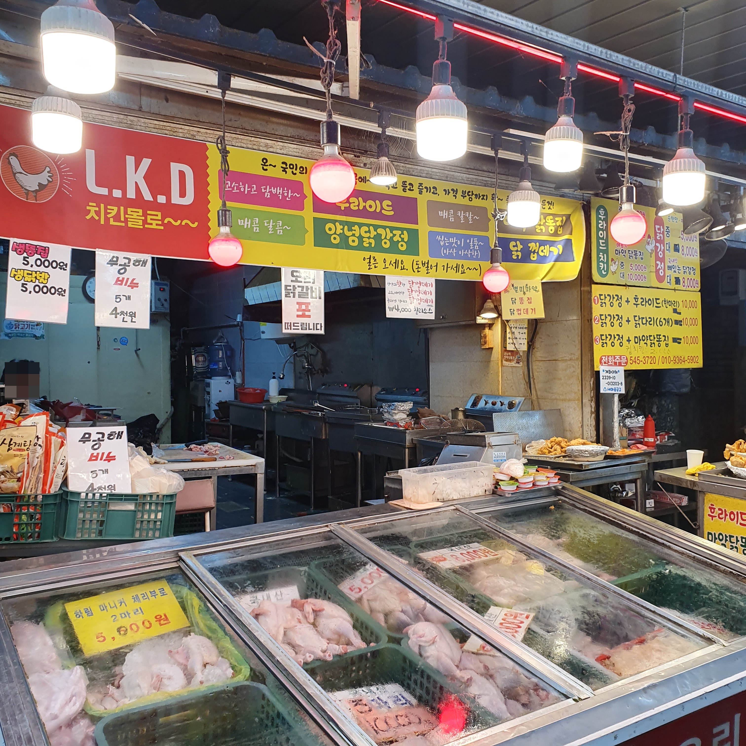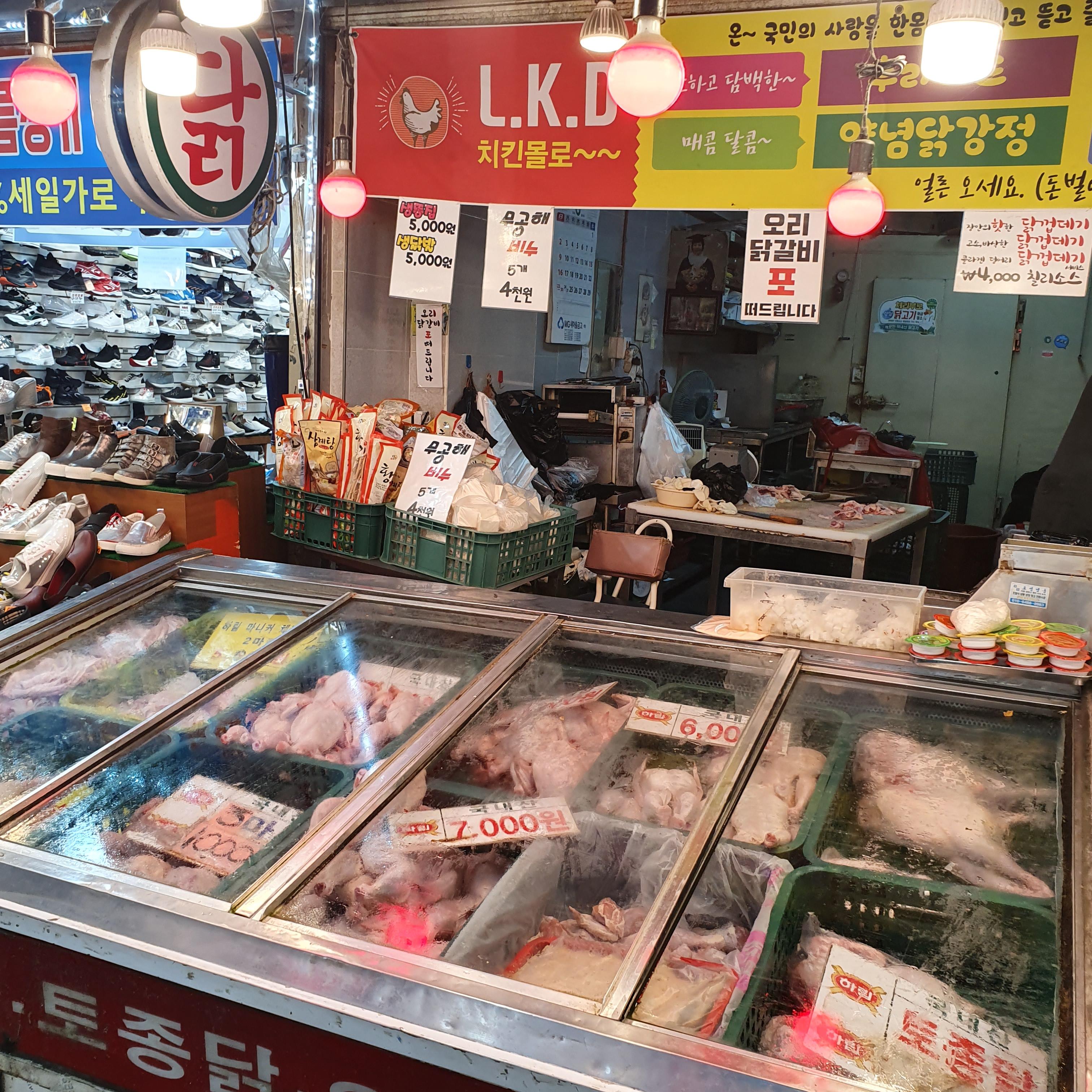 포장을 기다리면서 닭집 사진한번 찍어봤다. 생닭도 가끔 사먹었는데, 이제는 닭강정이나 닭똥집만 사먹으러 종종 오는 듯 하다.