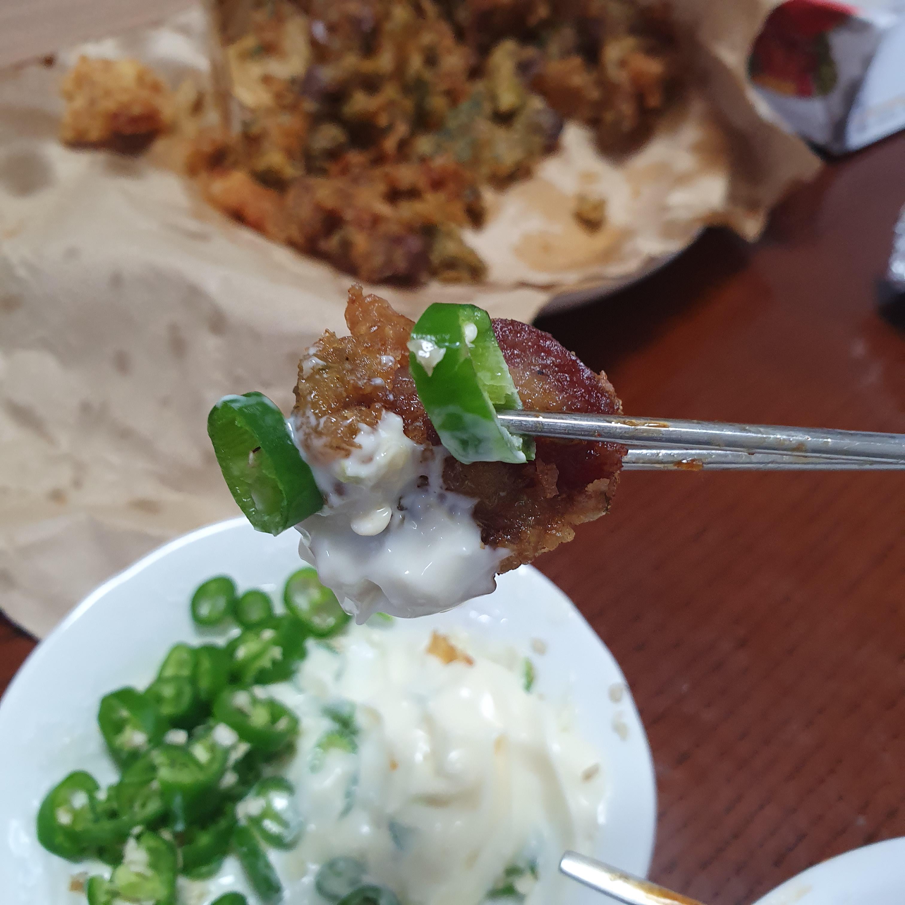 느끼함을 청양고추가 잡아주니 개꿀맛.