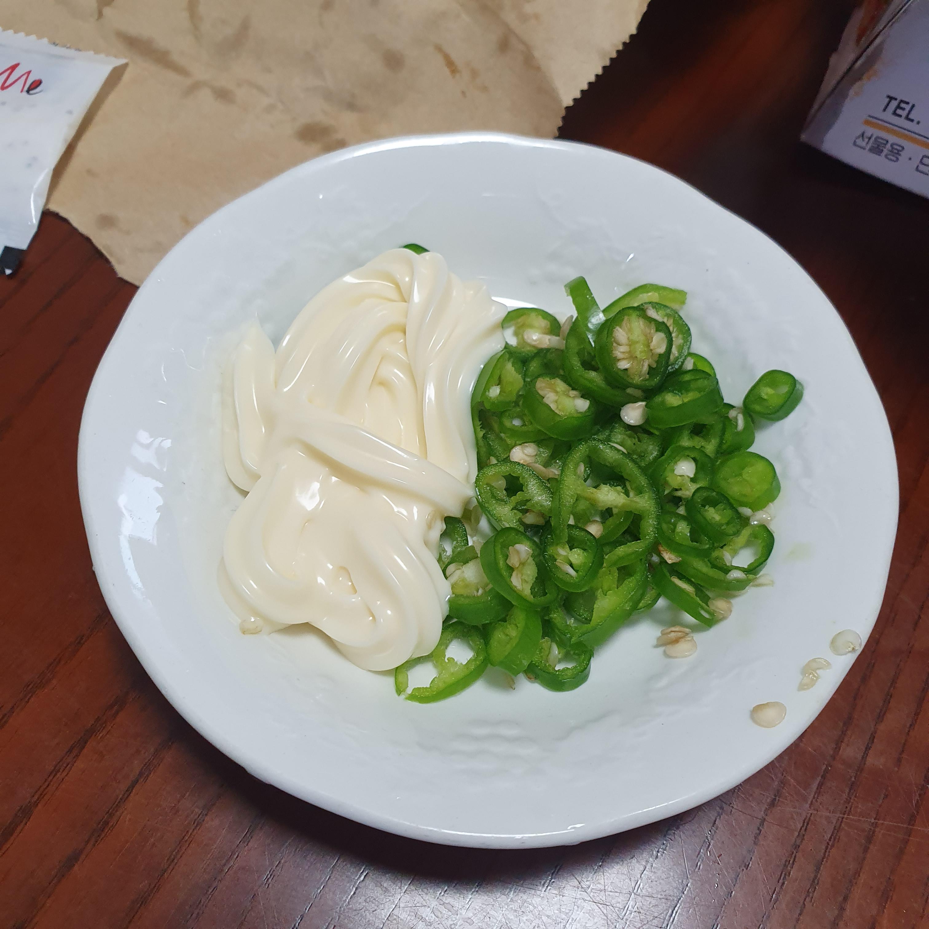 마요네즈 + 청양고추 콜라보 소스를 만든다.