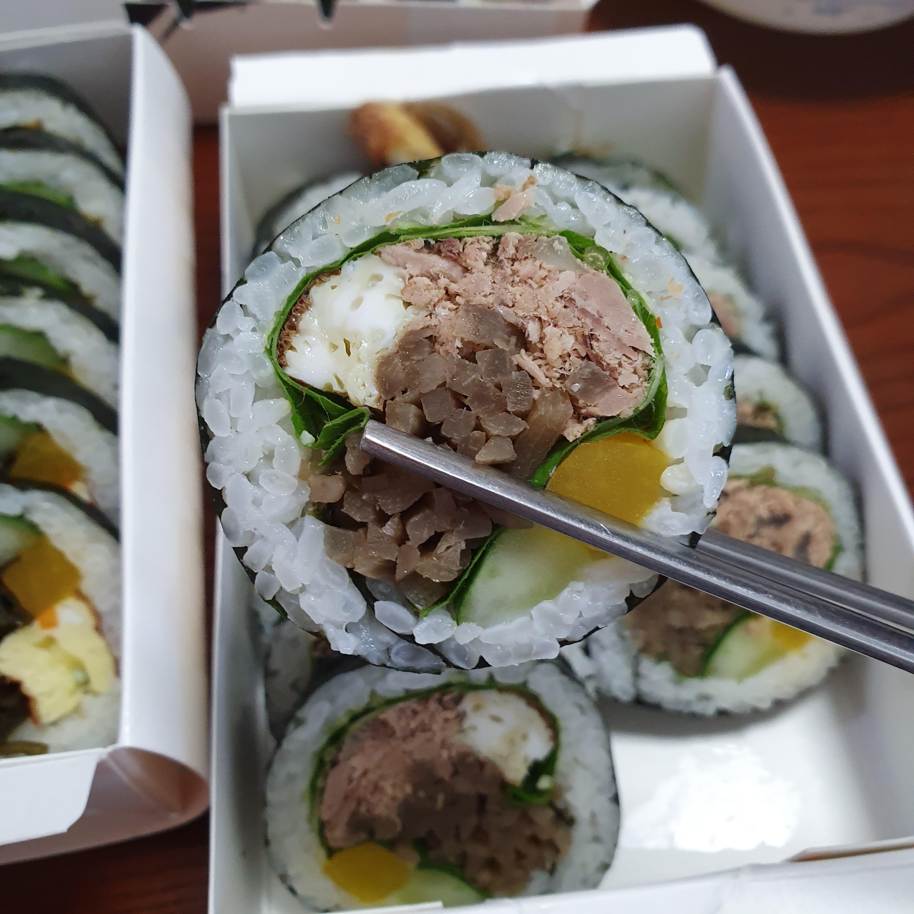 깻잎과 오이의 향도 괜찮았으나, 일반적인 느끼한 참치김밥이 내 입맛엔 딱이다.