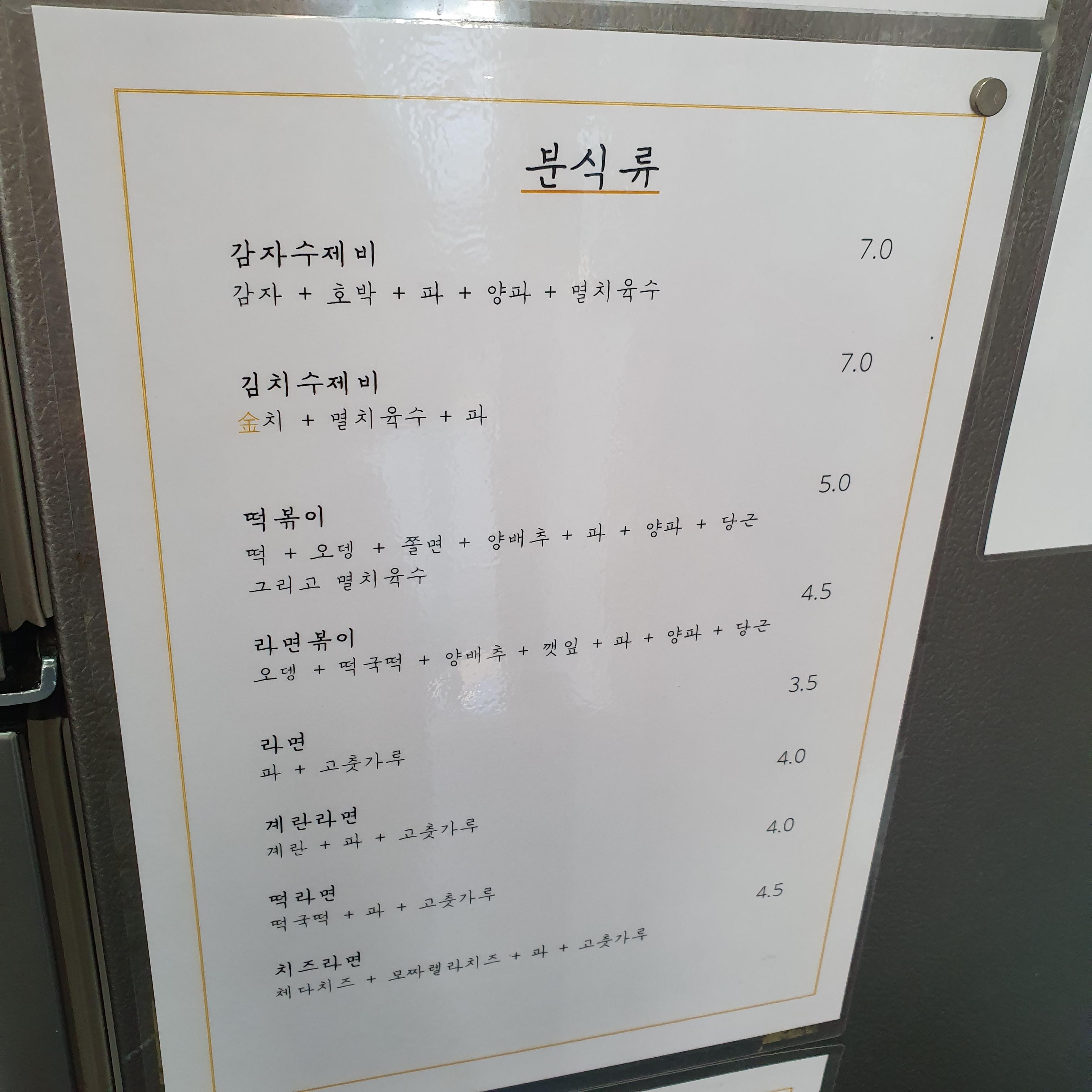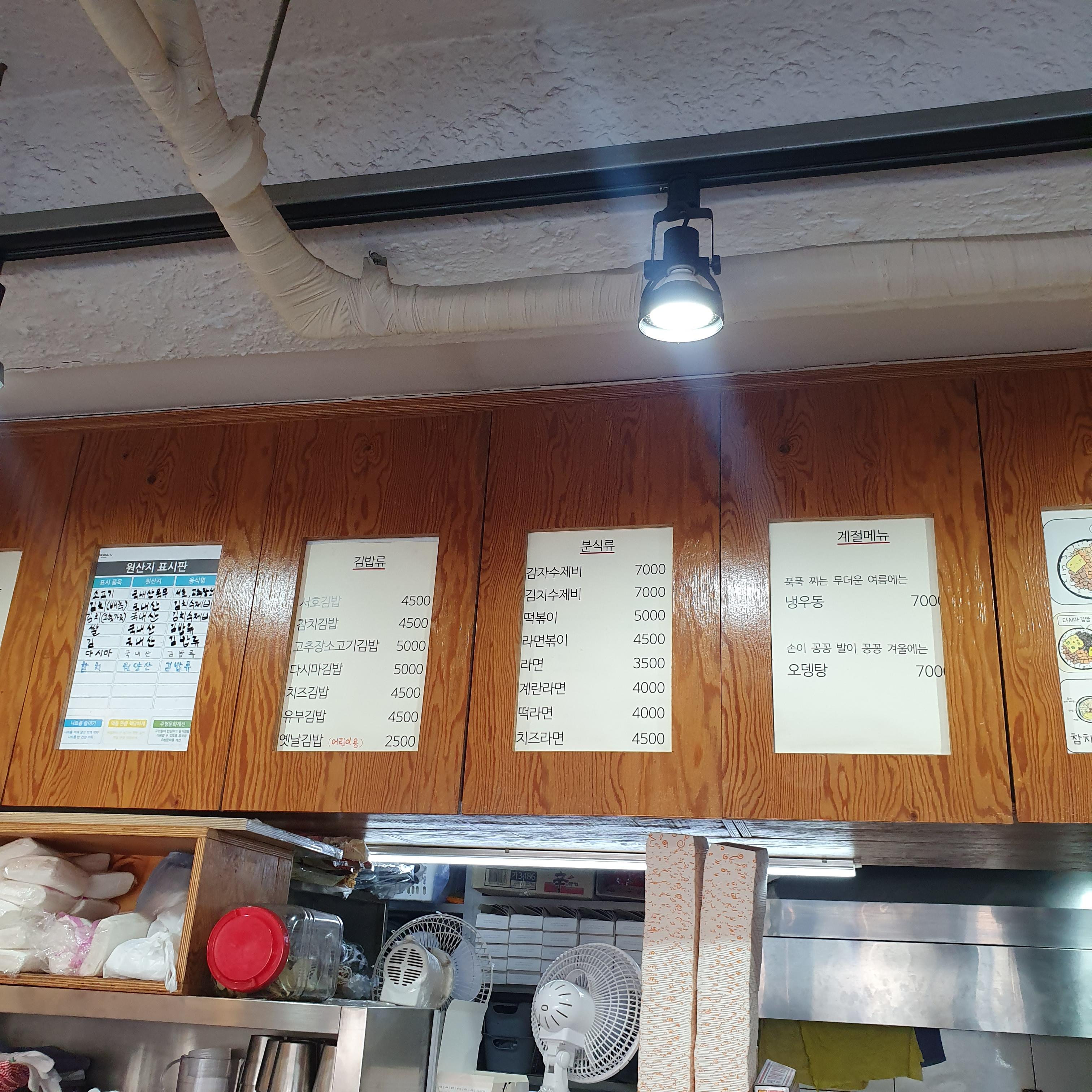 서호김밥에는 김밥 외 분식류도 판매한다.