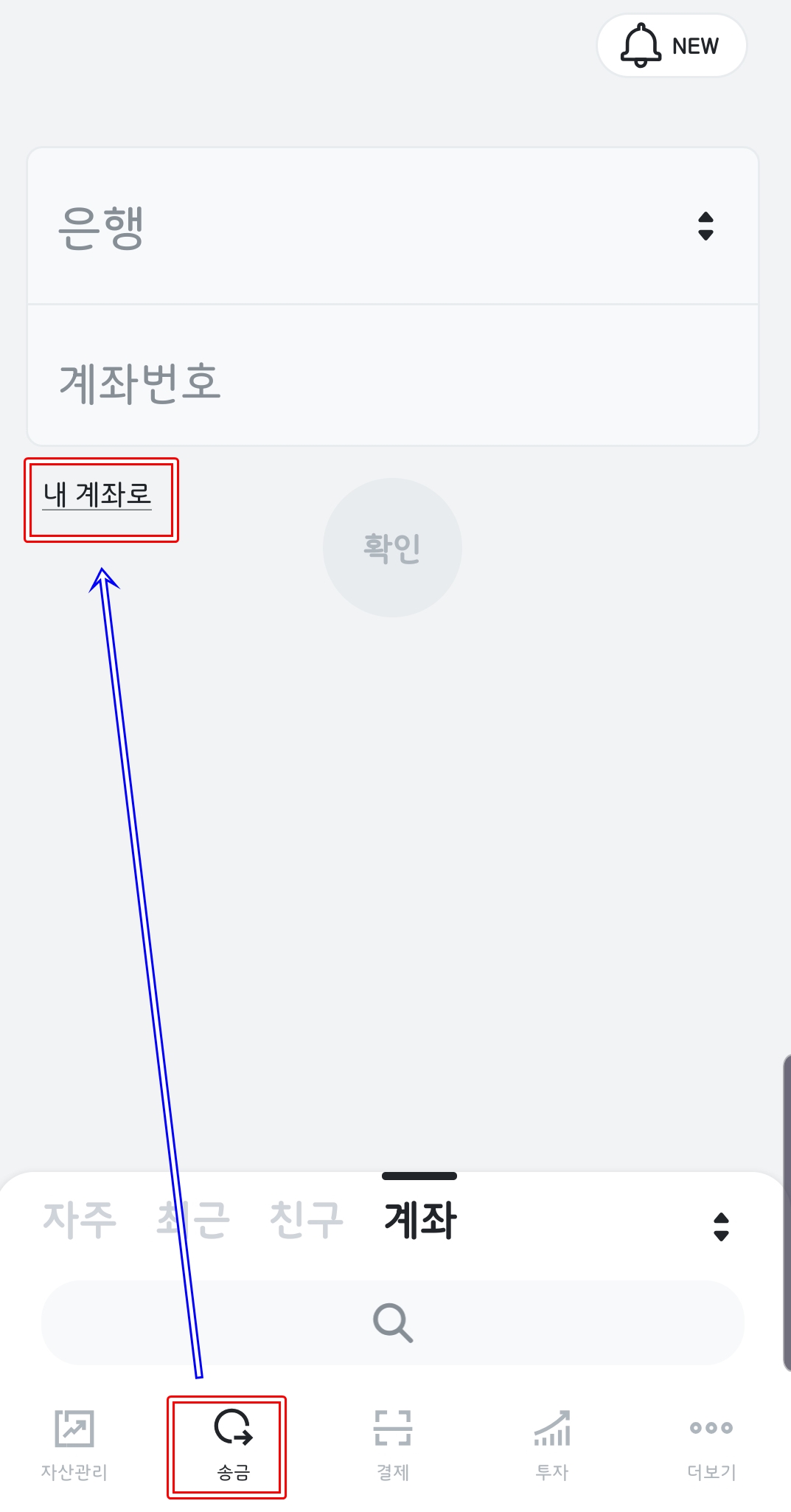 송금을 누르고, 내 계좌로를 눌러주세요.