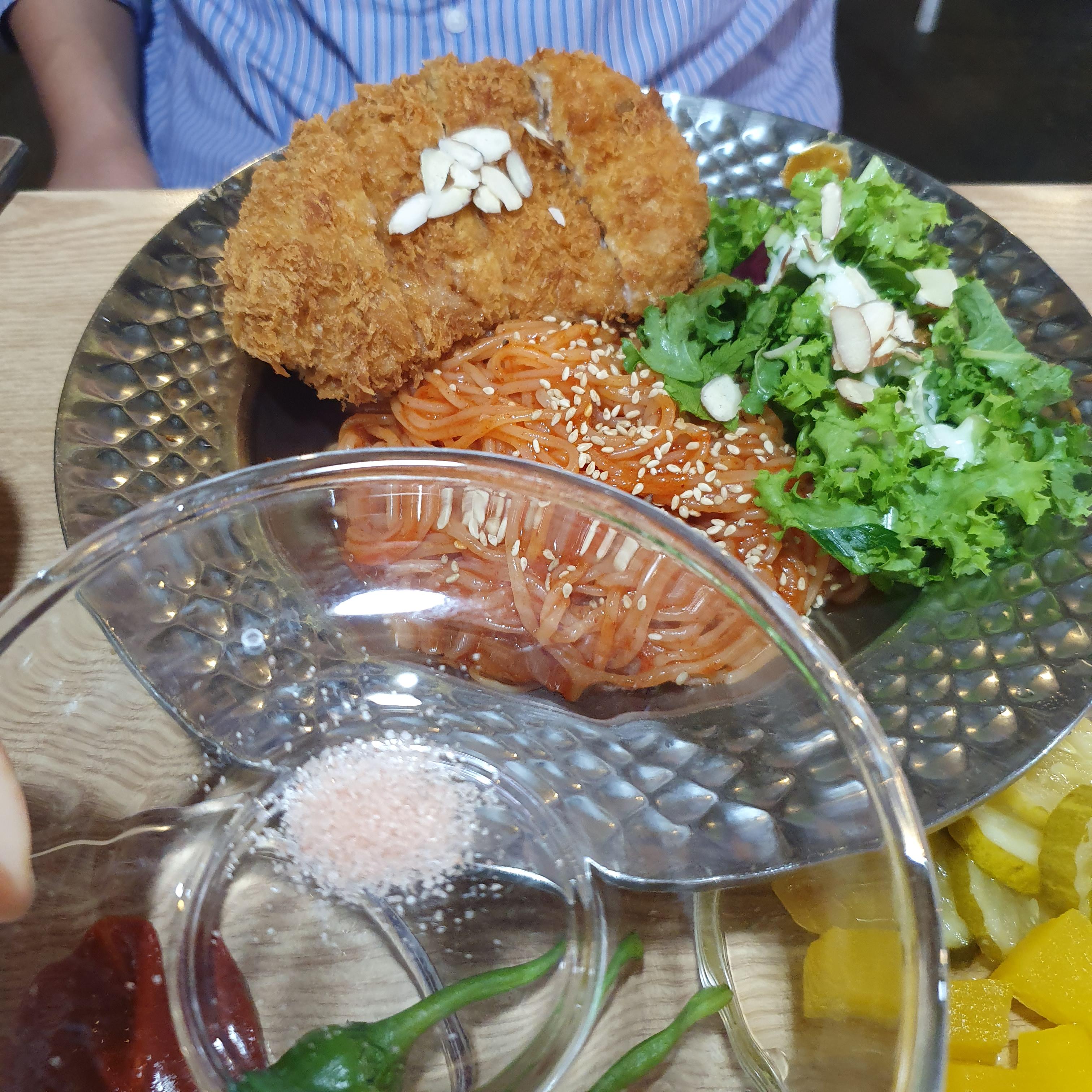 매콤한 쫄면과 돈까스를 같이 먹는다는 것은 좋으나,