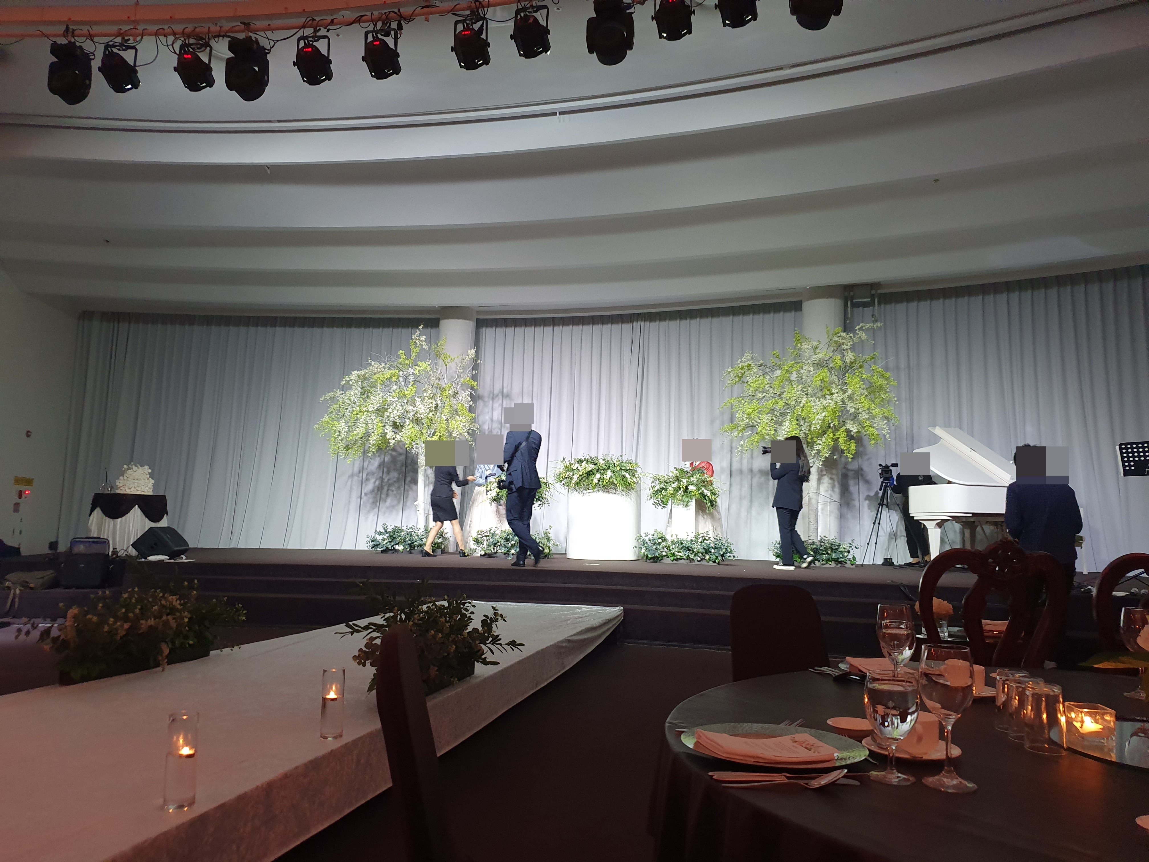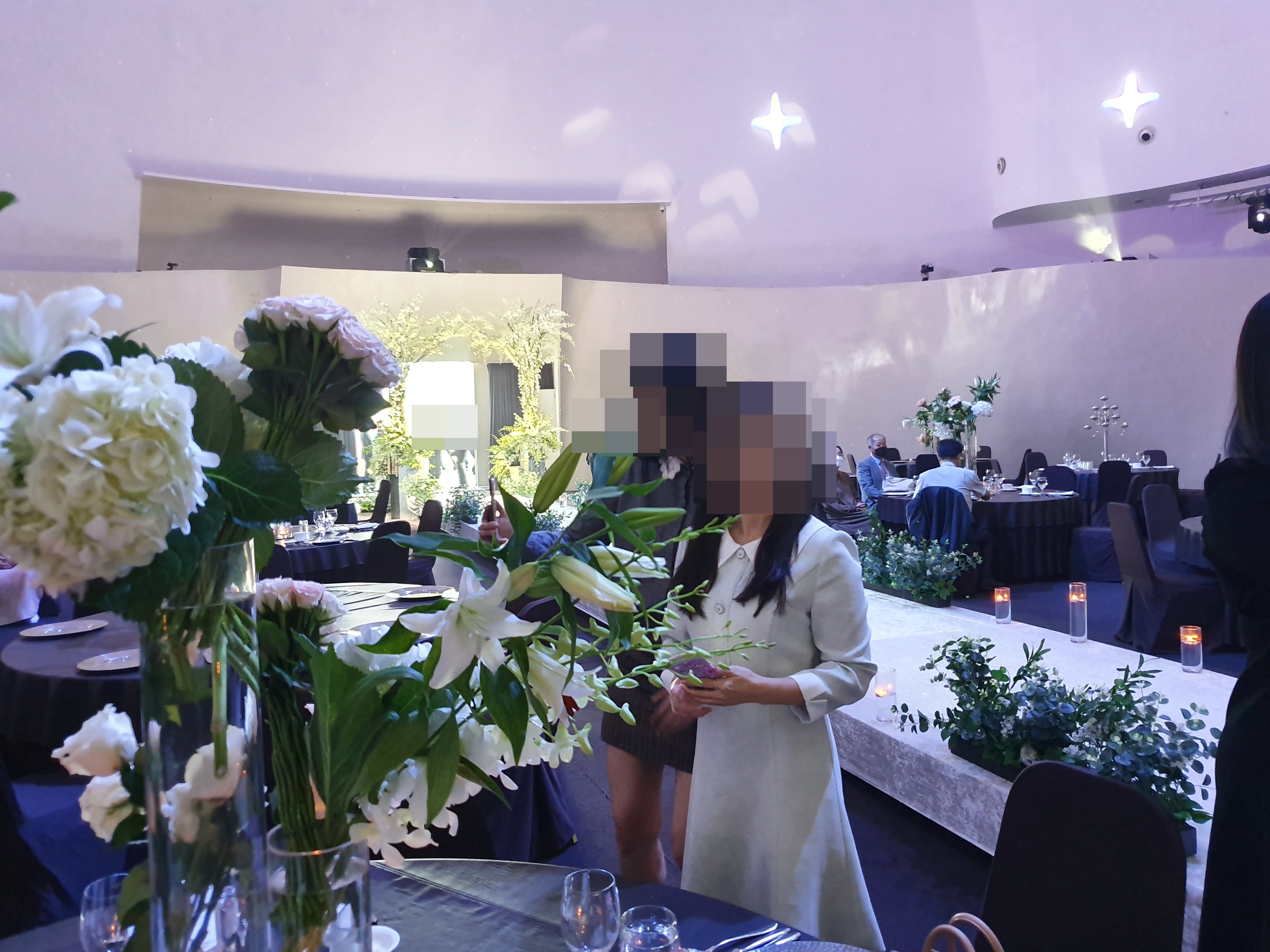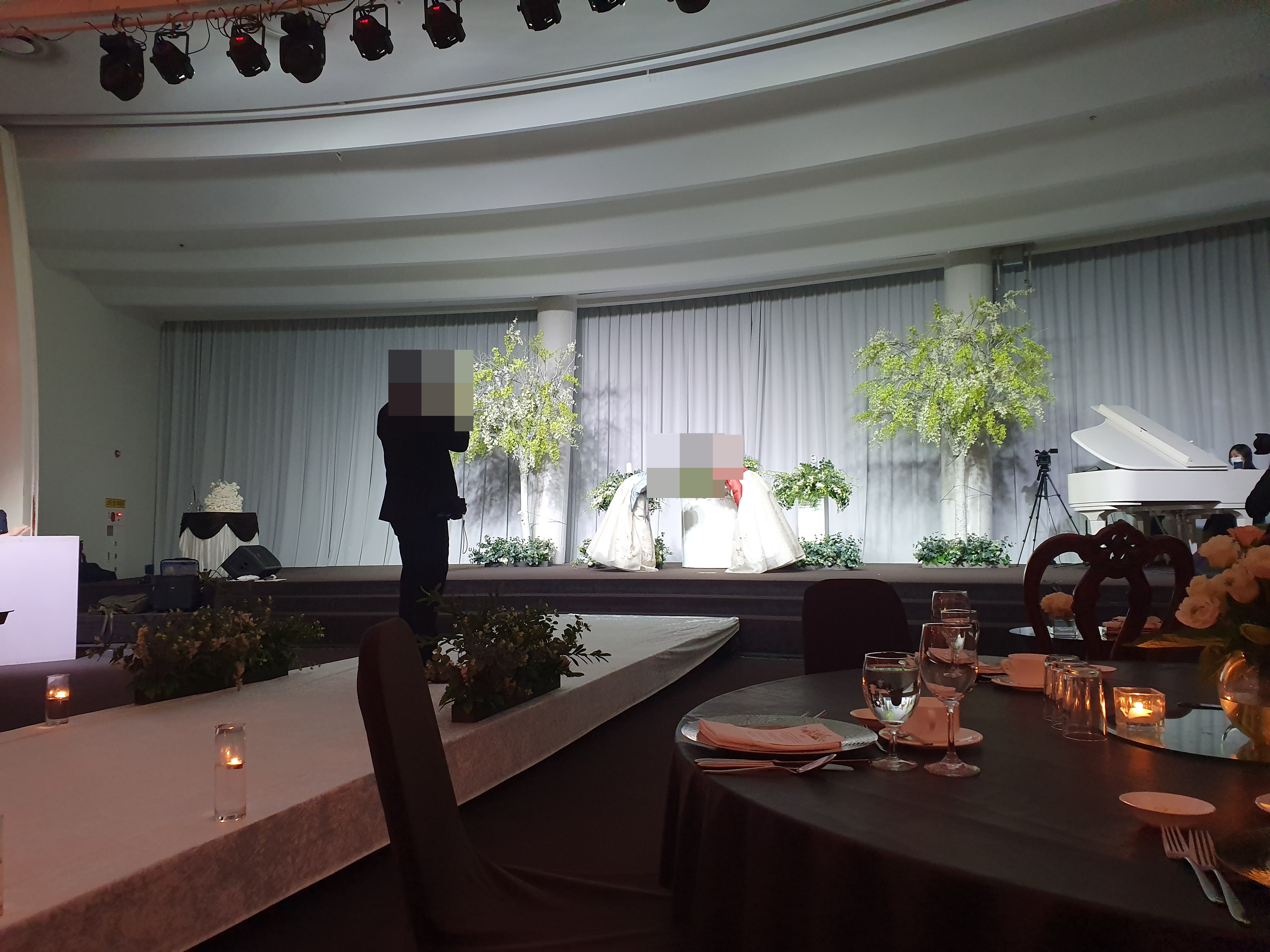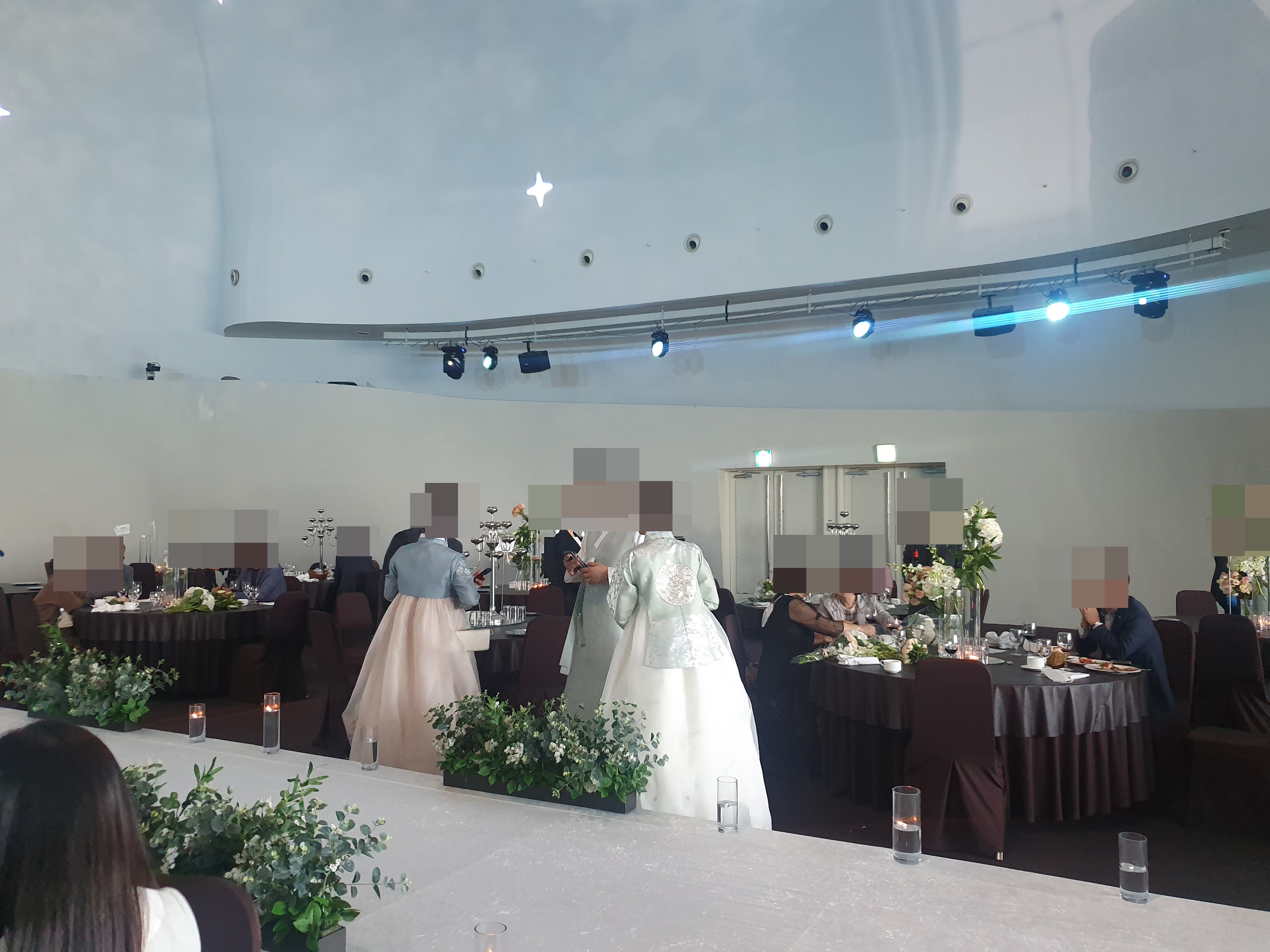 코로나 때문에 메인홀, 그리고 친구 및 직장동료를 위한 연회장 2곳에 사람이 분산되어 있어서