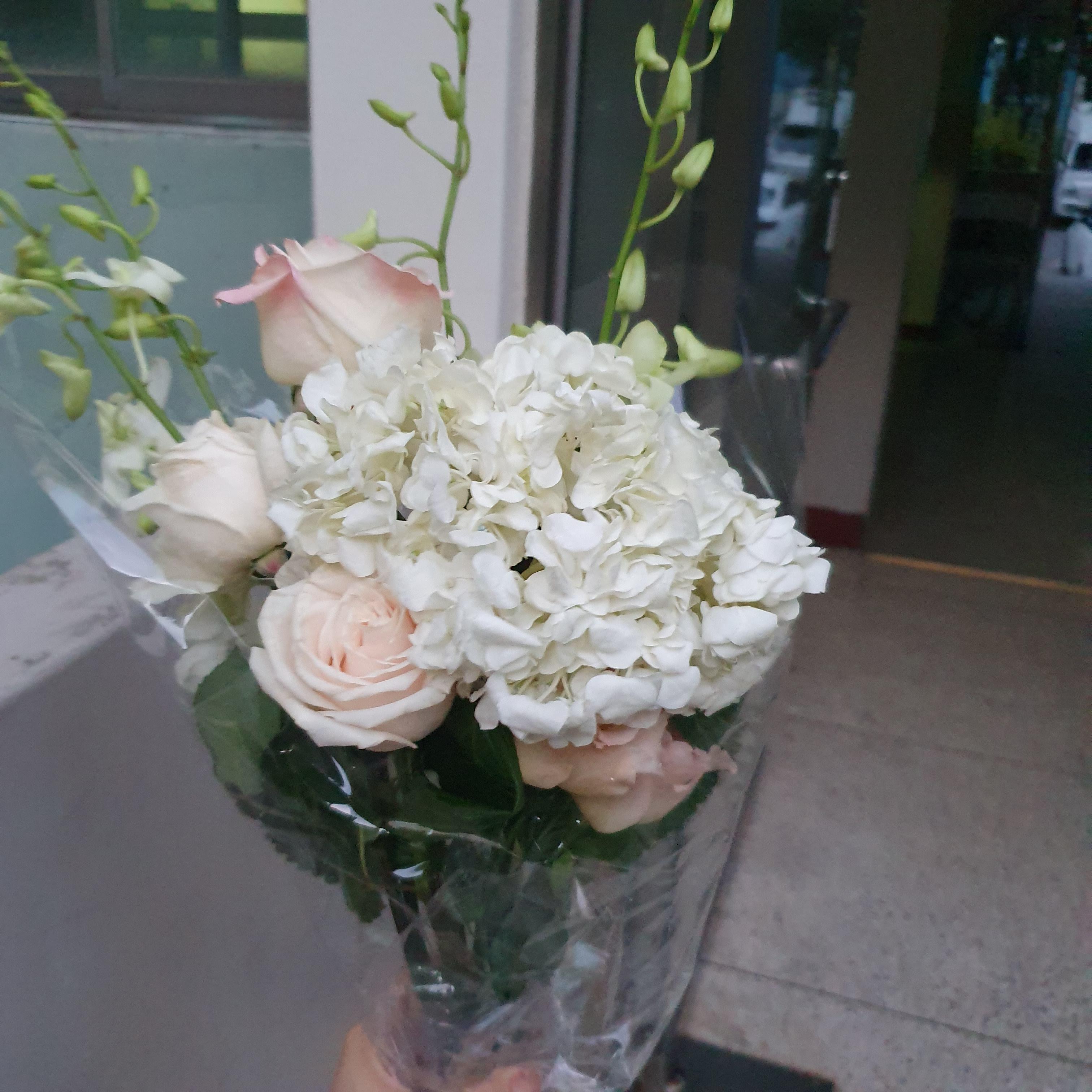 그래서 한다발 들고 집으로 돌아가는데, 어찌나 즐겁던지.