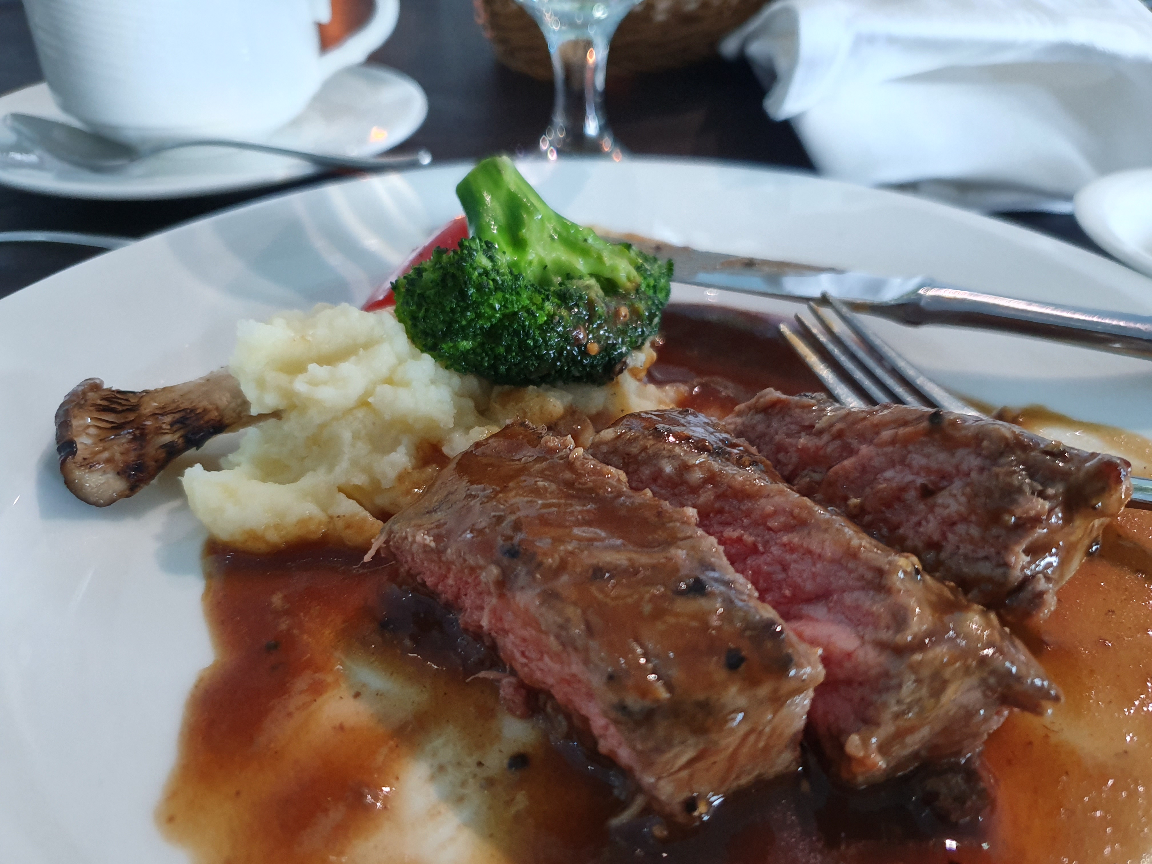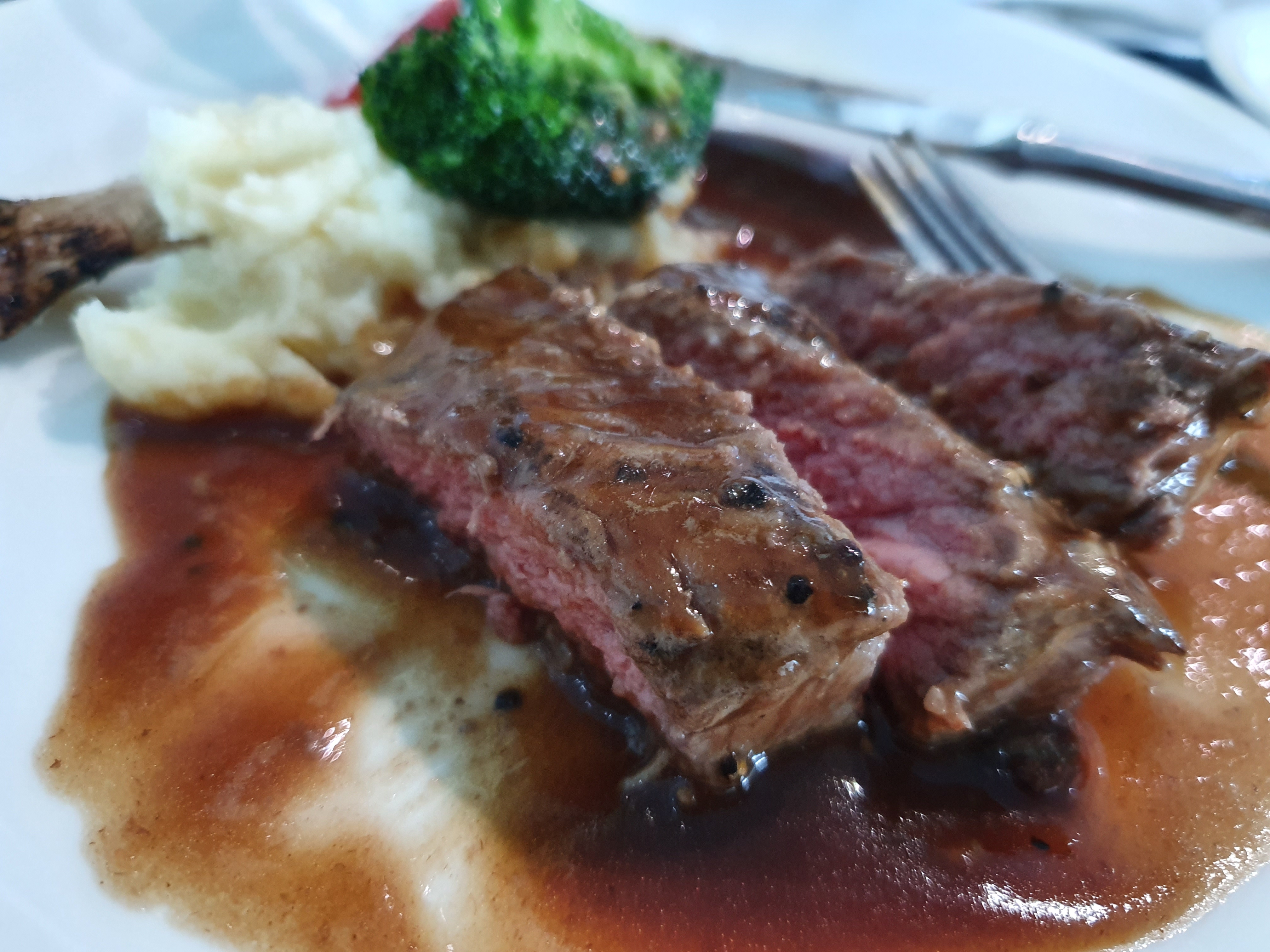석쇠에 구운 등심스테이크와 레드와인소스.