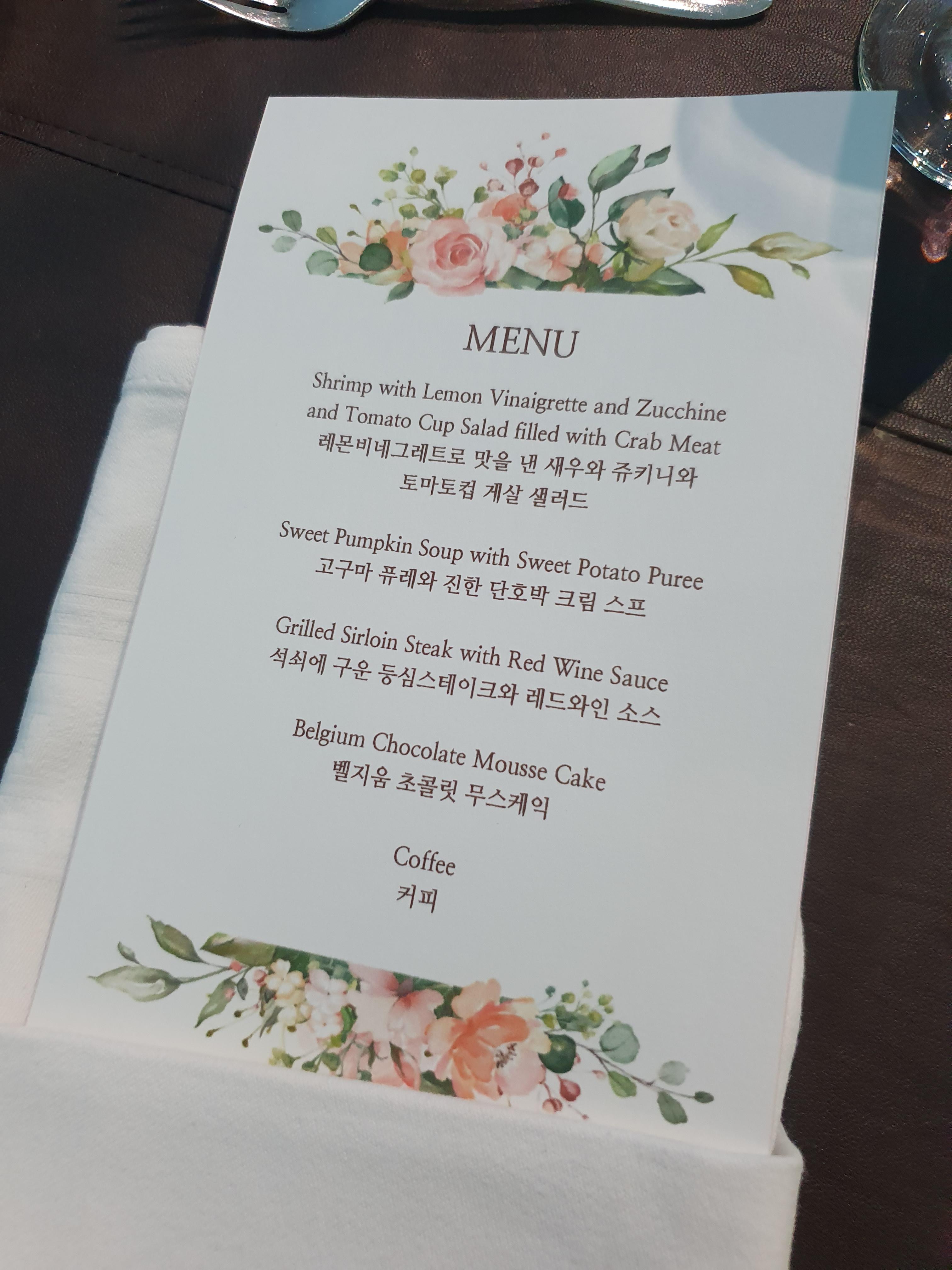 플로팅아일랜드 컨벤션 식사는 코스로 준비되어 있었습니다.