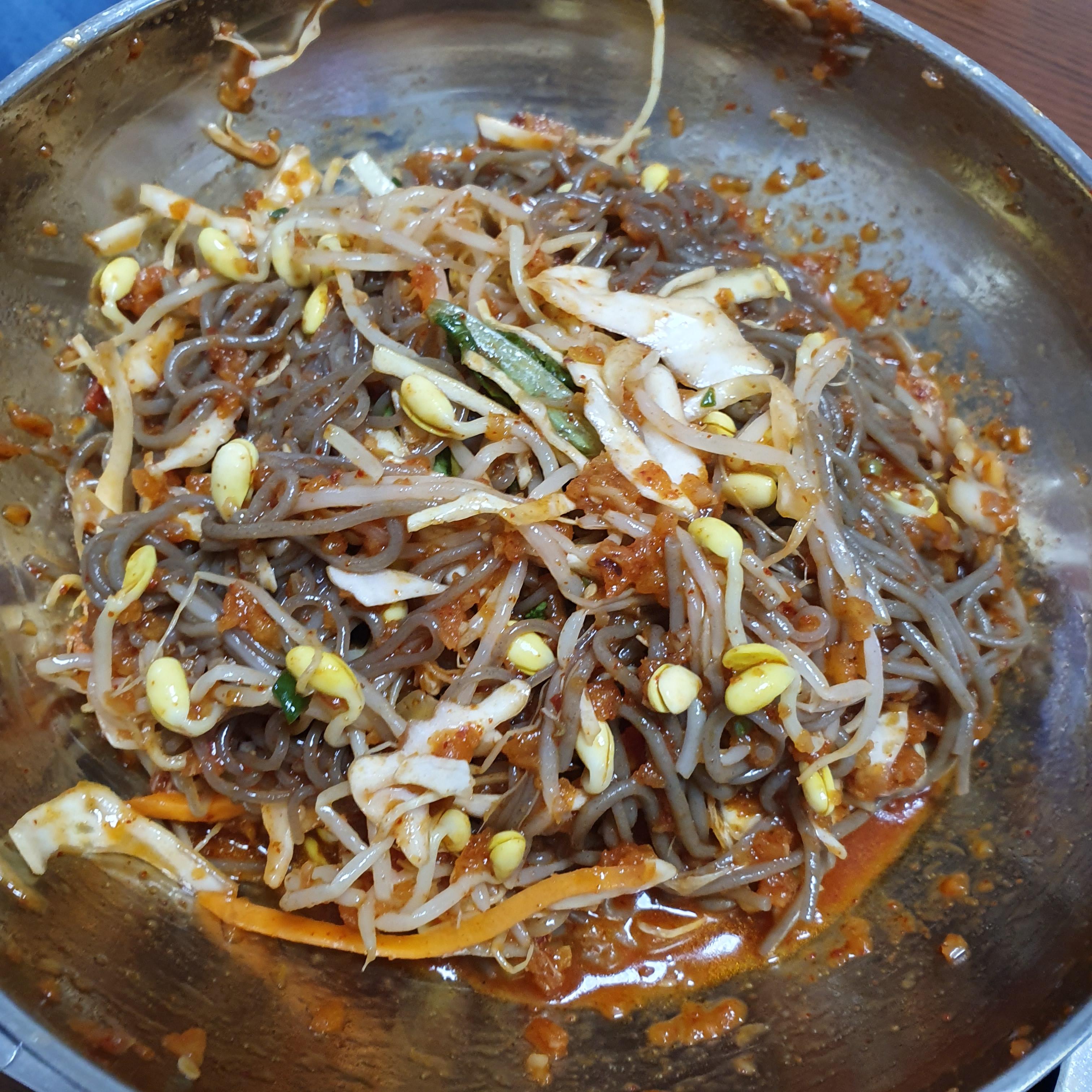 집에 콩나물이 있어서 콩나물과 당근등 야채를 넣어서 막국수를 비볐습니다.