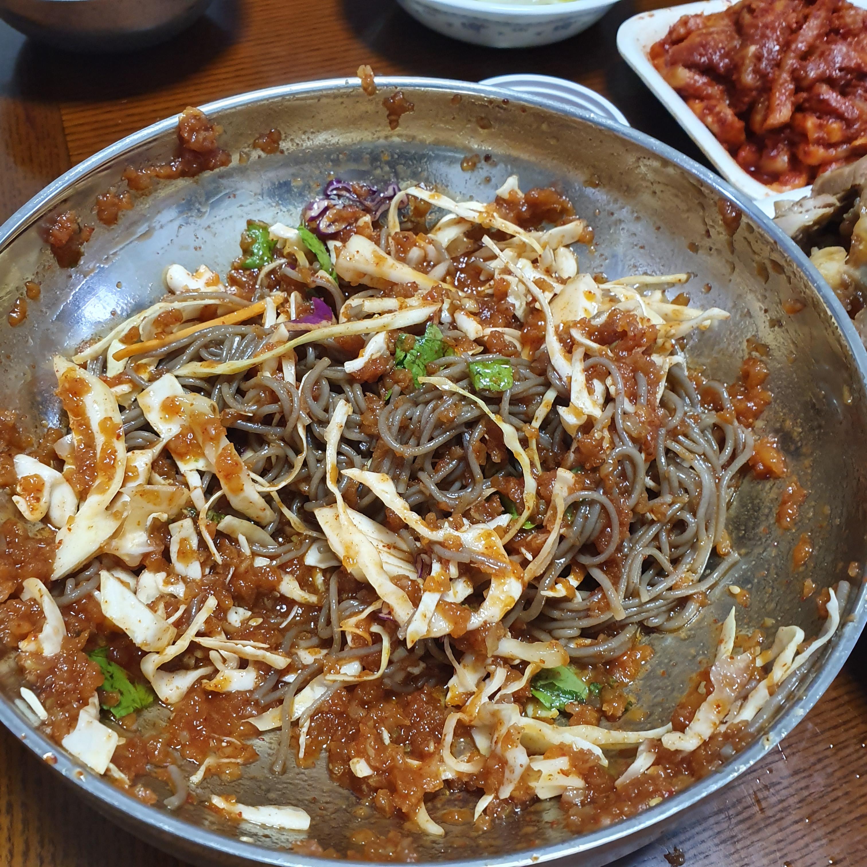 집에 있는 양배추를 썰어 넣은 막국수.