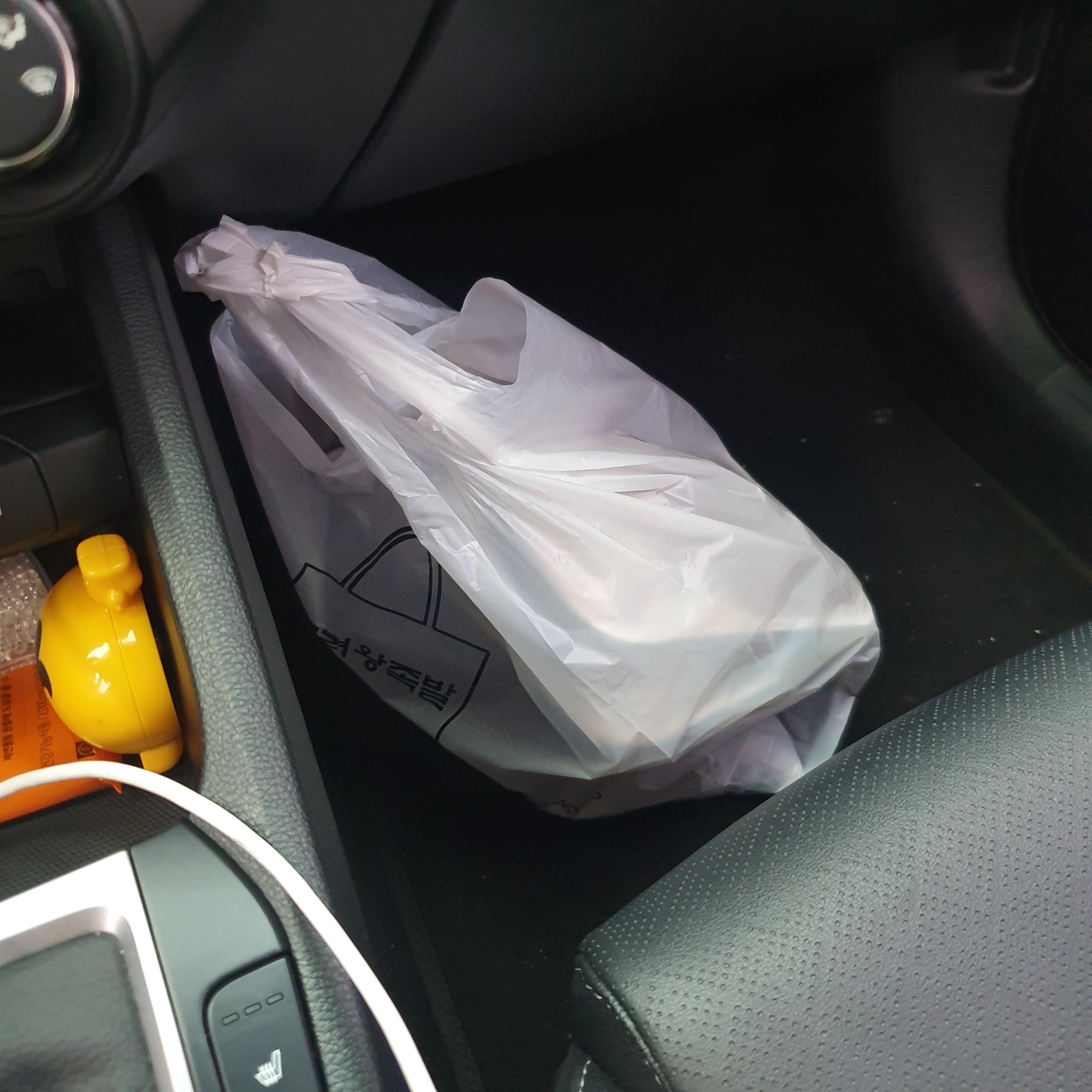 옆자리에 포장한 족발을 실어서 집으로 갑니다.