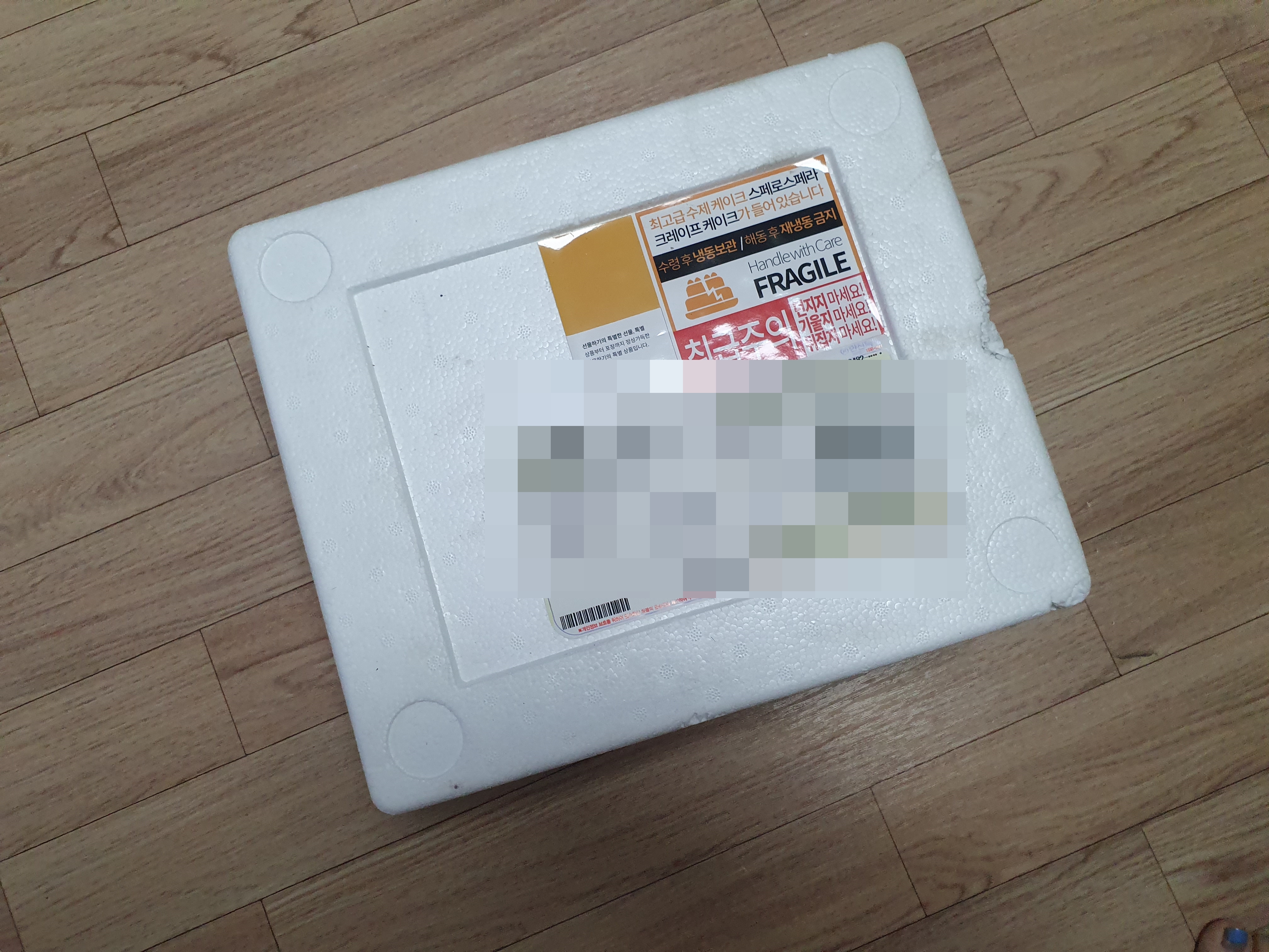 스티로폼 상자에 안전하게 케이크가 도착했습니다.