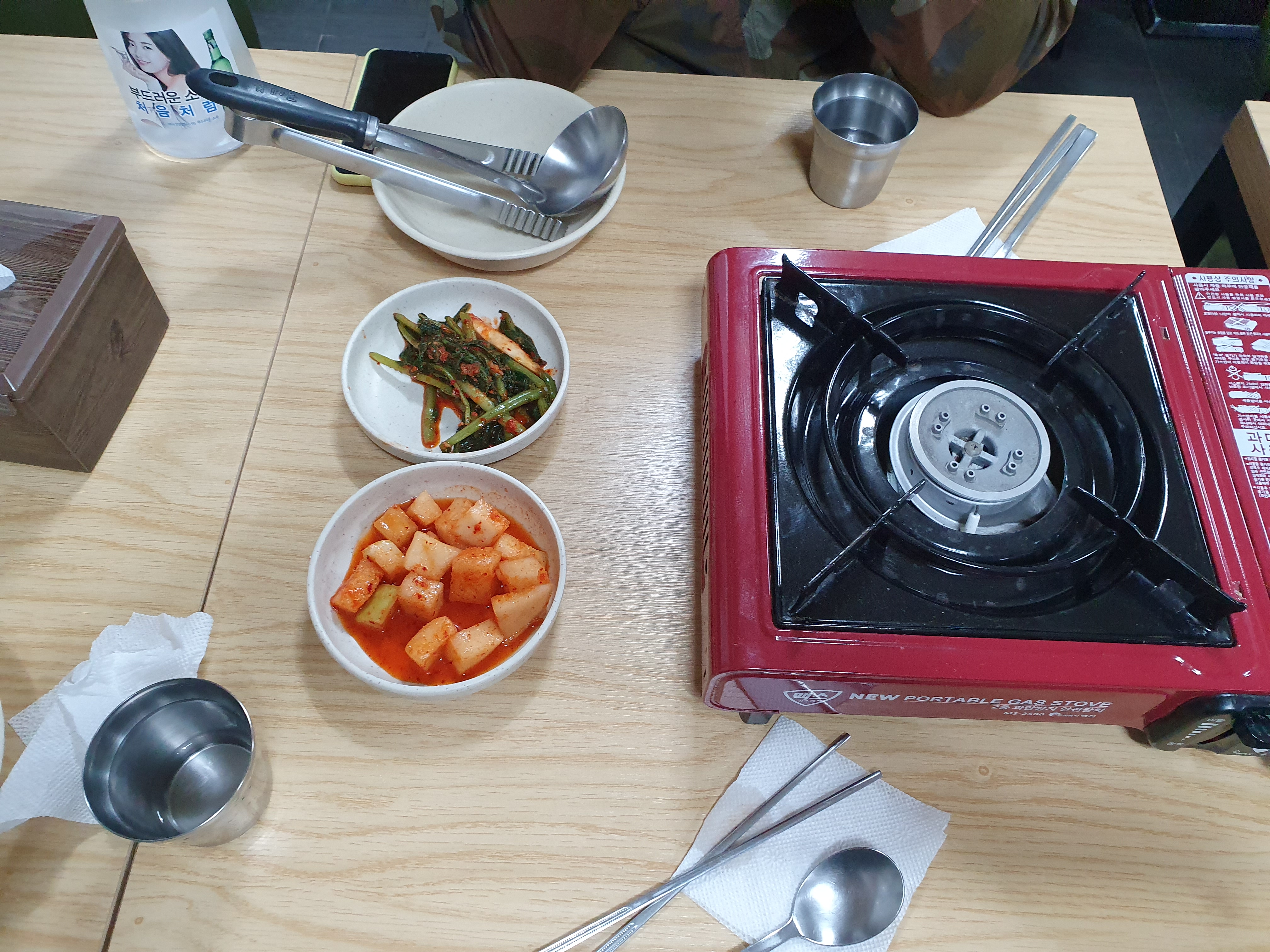 오랜만에 식당에서 남편과 소주한잔하니