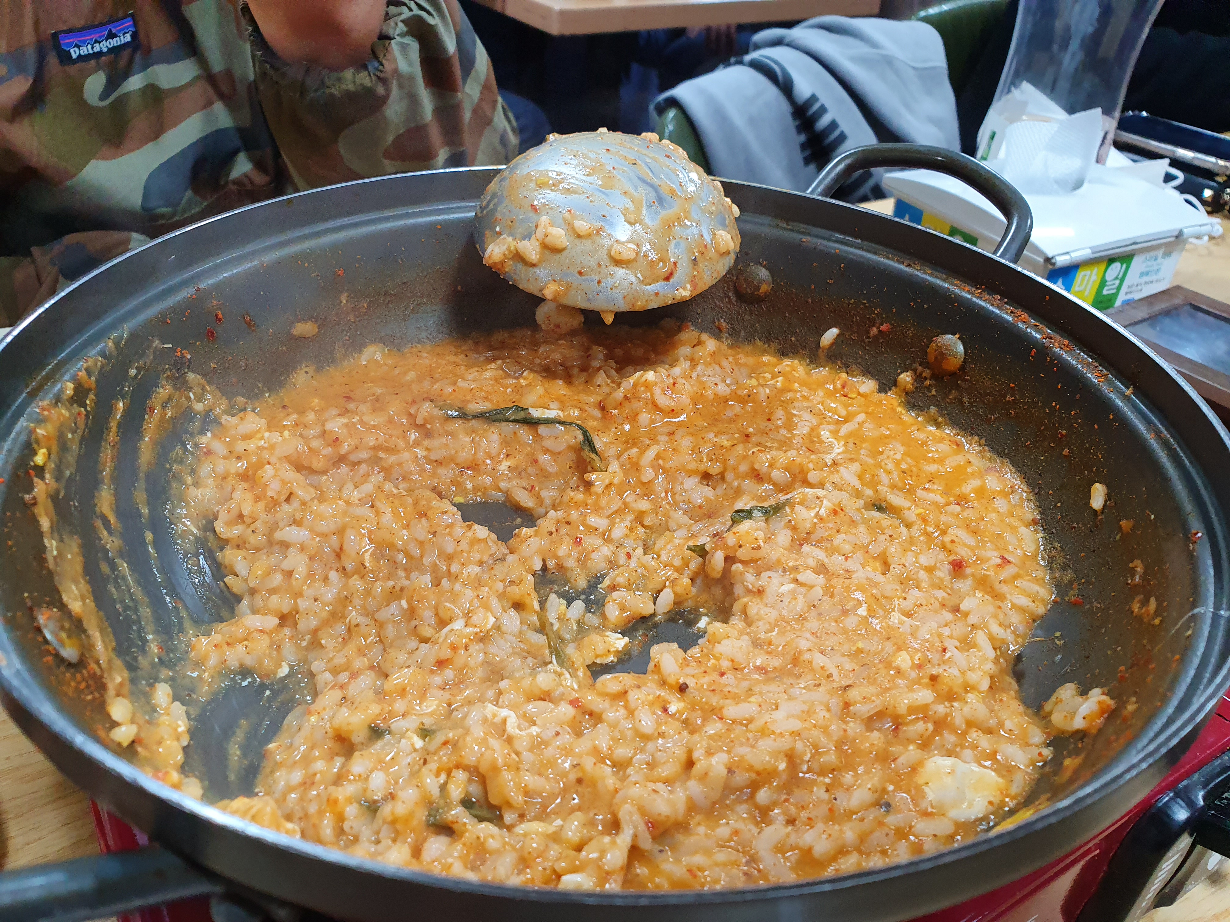 남은 국물에 공기밥 2개 넣고 계란하나 풀어서 어죽을 만들어 주십니다.