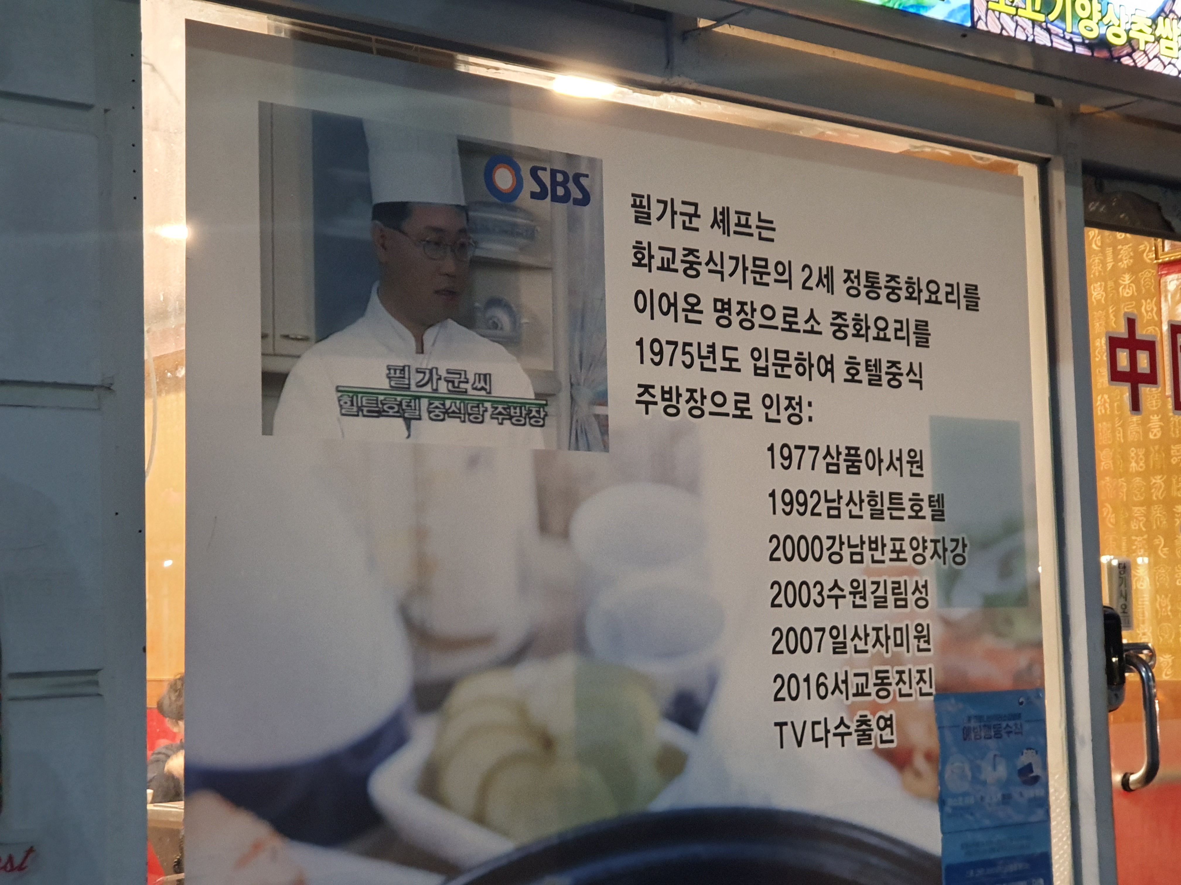 그 외에도 유명한 중식당에서 근무이력 및 다양한 대중매체에 소개된 요리사입니다.