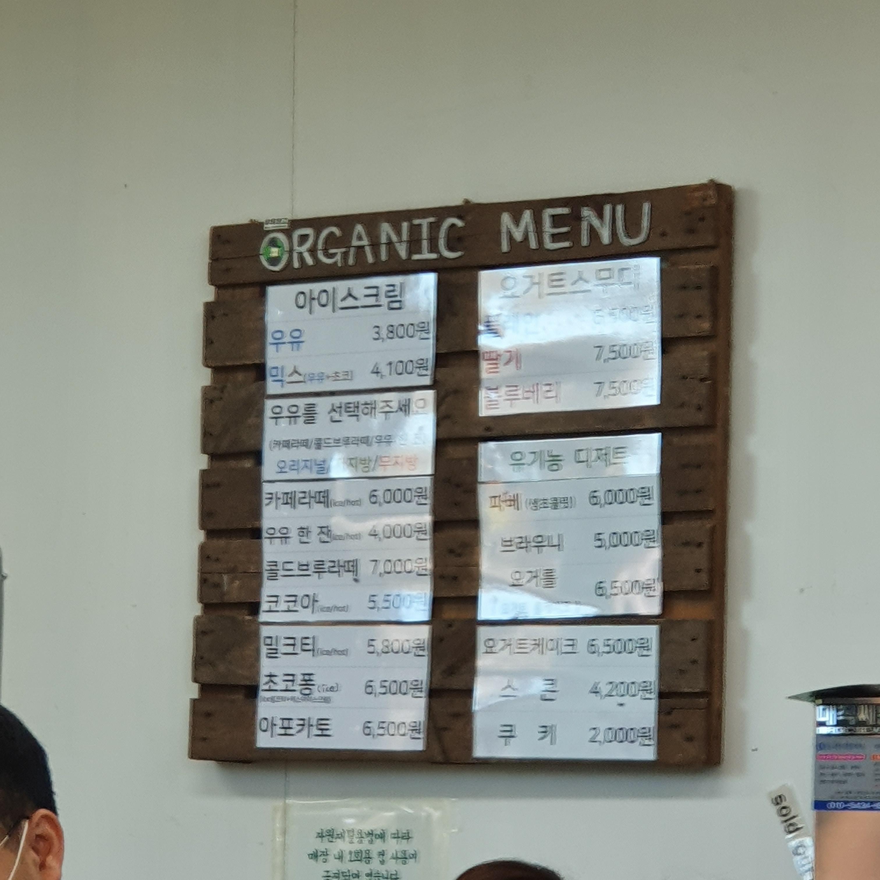 우유창고 메뉴판.
