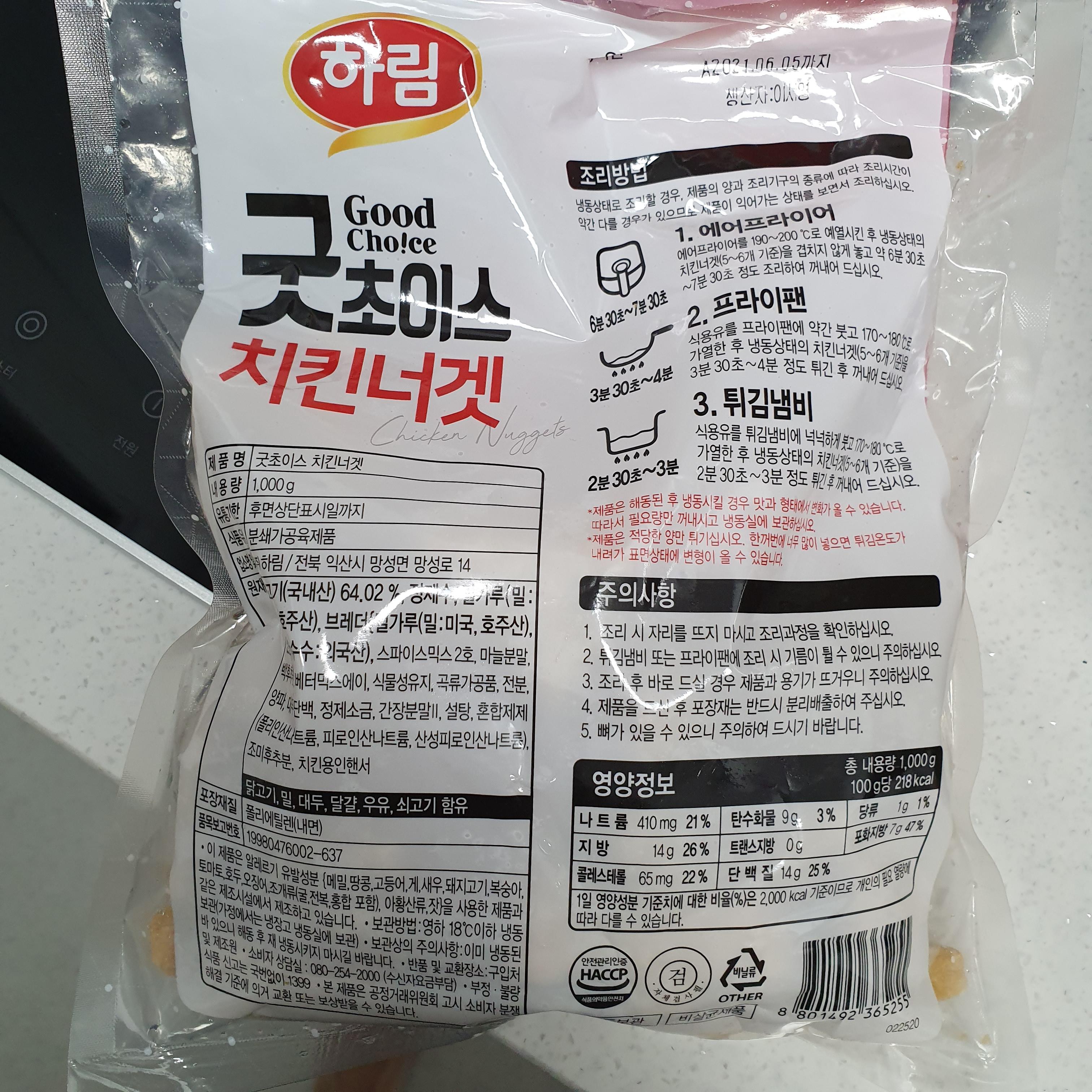 구입한 하림 굿초이스 치킨너겟.