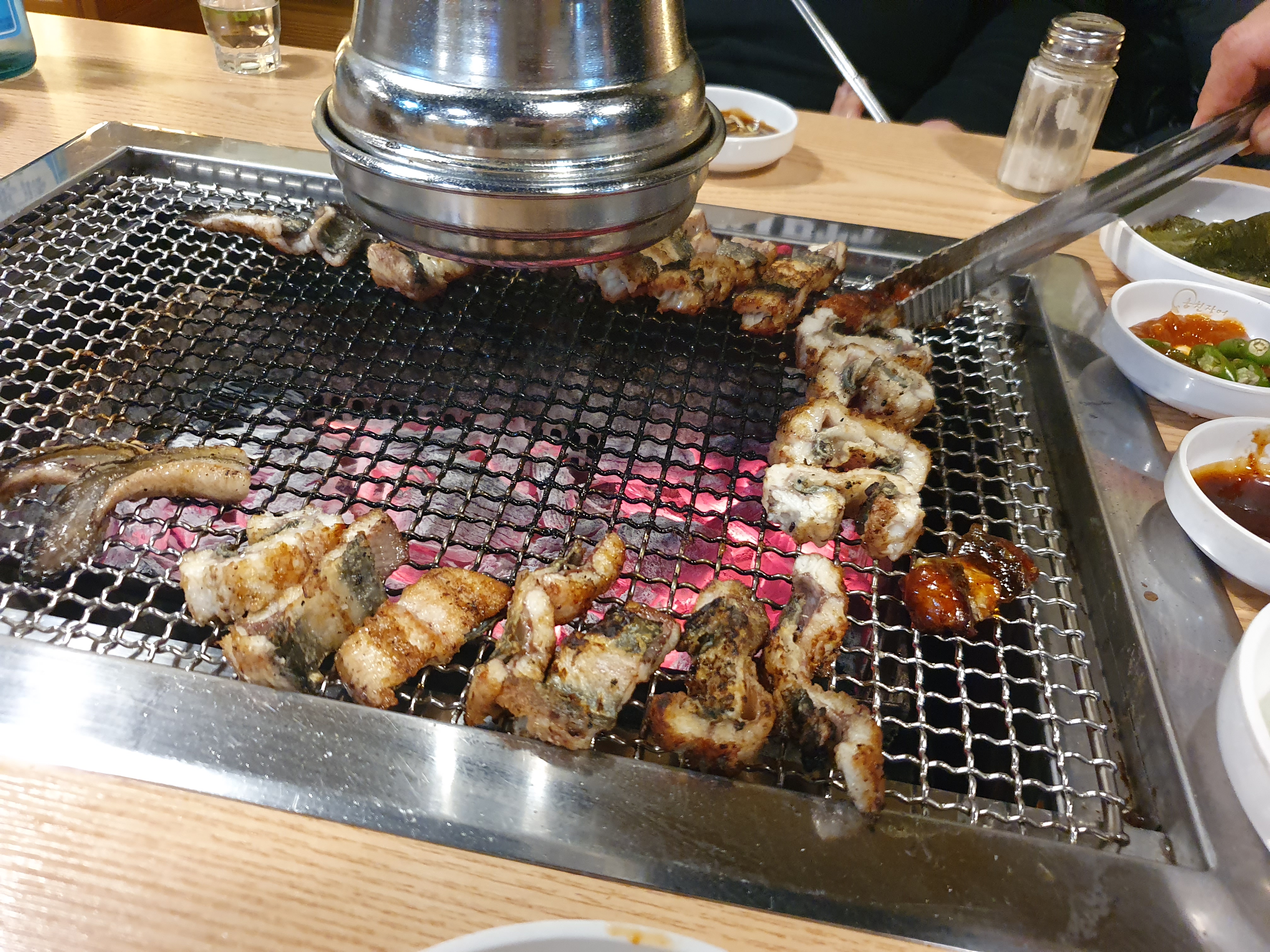 장어에 천일염을 챱챱 뿌려서 구어주십니다.