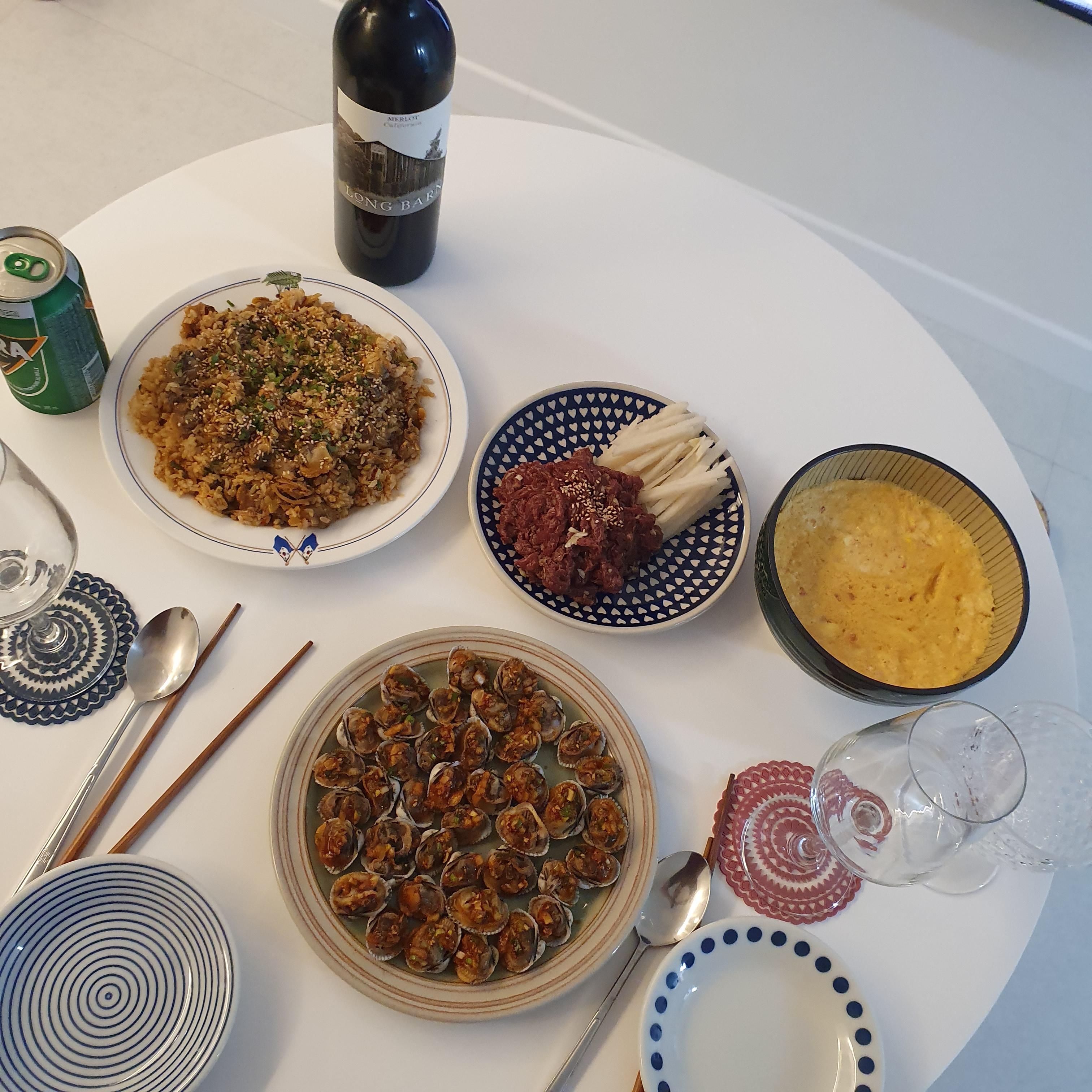 남편은 계란 노른자에 육회를 찍어먹는다고 노른자를 준비했더라구요.