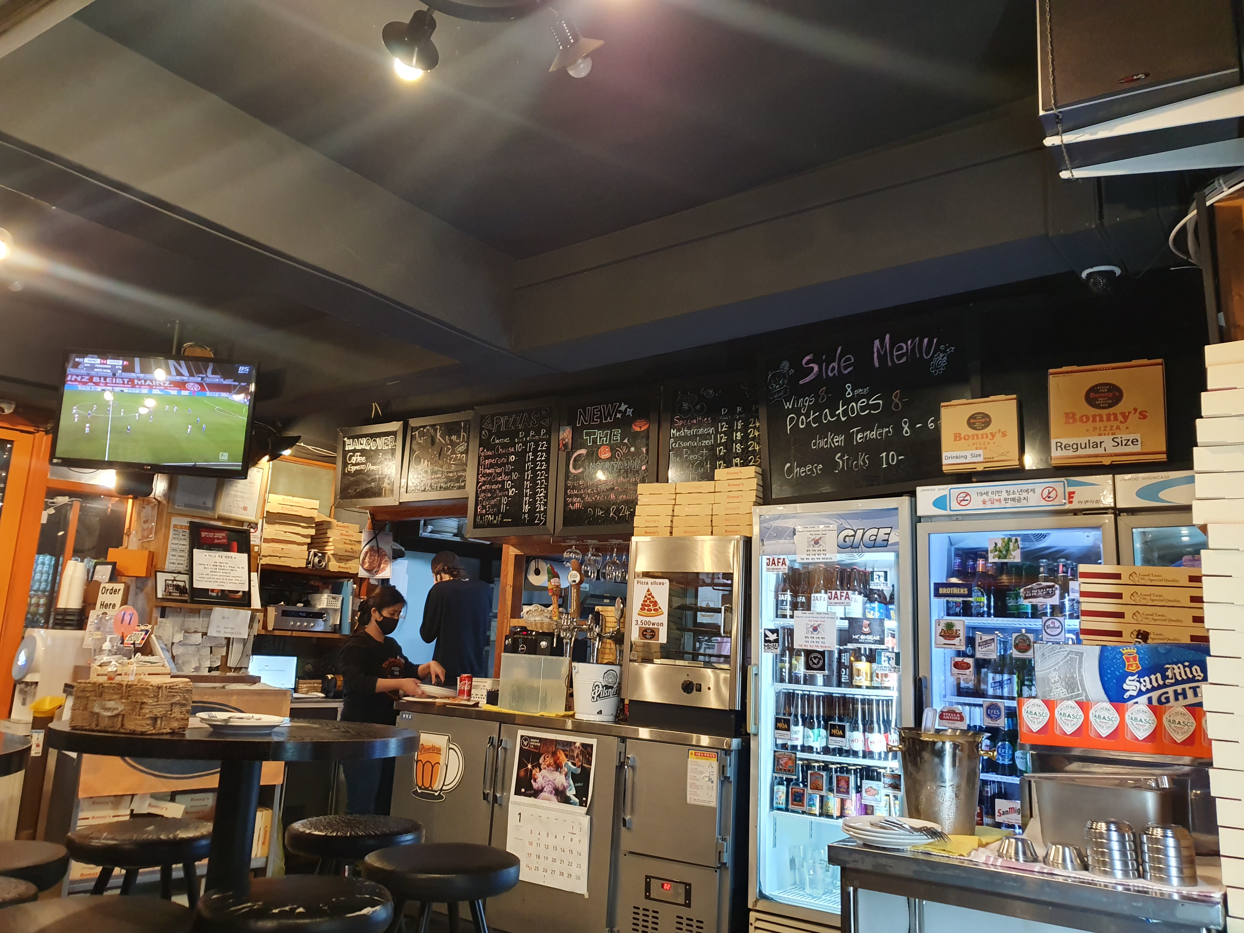 보니스피자펍의 직원분들은 외국인 입니다.