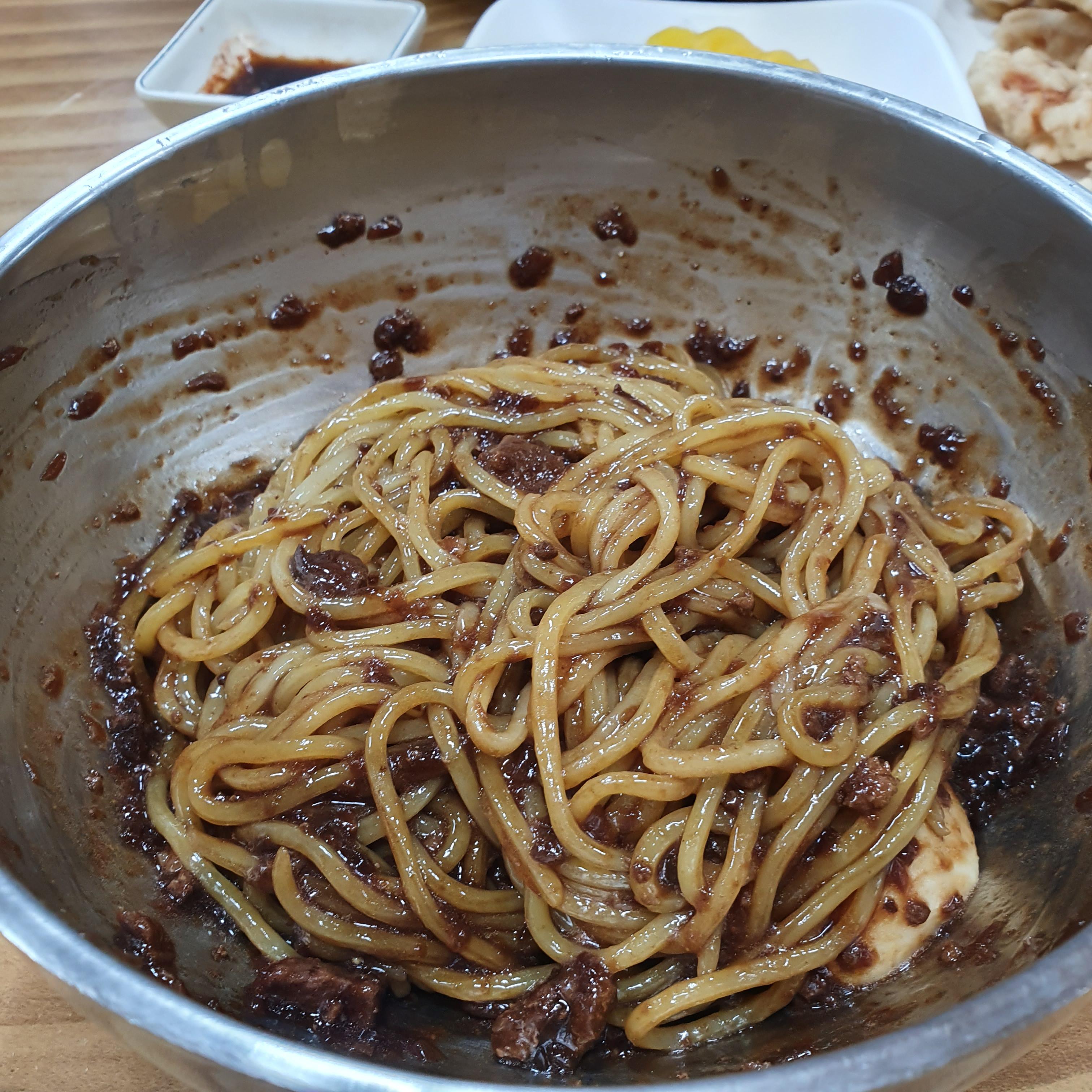 몰랐는데, 남편은 짜장에 고추가루를 뿌려 먹었네요. ㅋㅋㅋ
