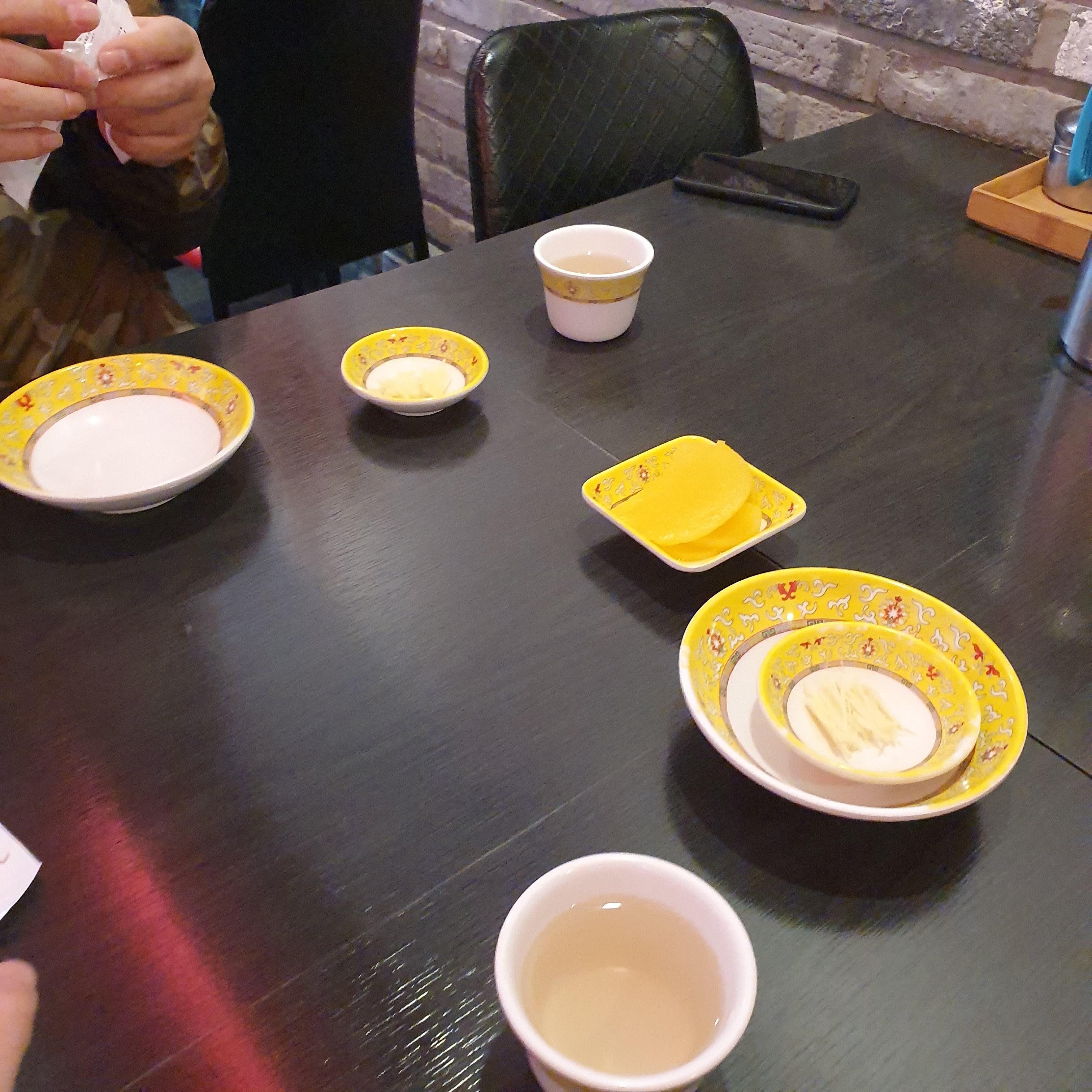 자리에 착석을하면 따뜻한 물과 단무지를 가져다 주십니다.