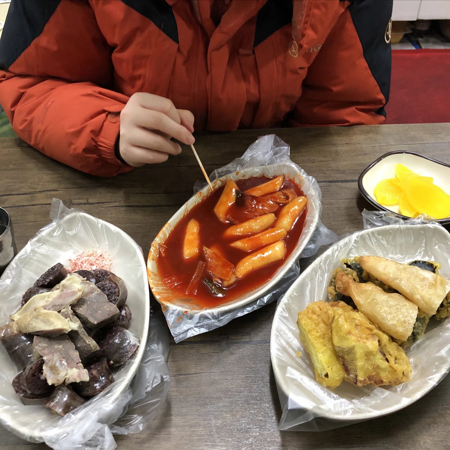컵떡볶이, 오뎅등을 먹기도 한다.