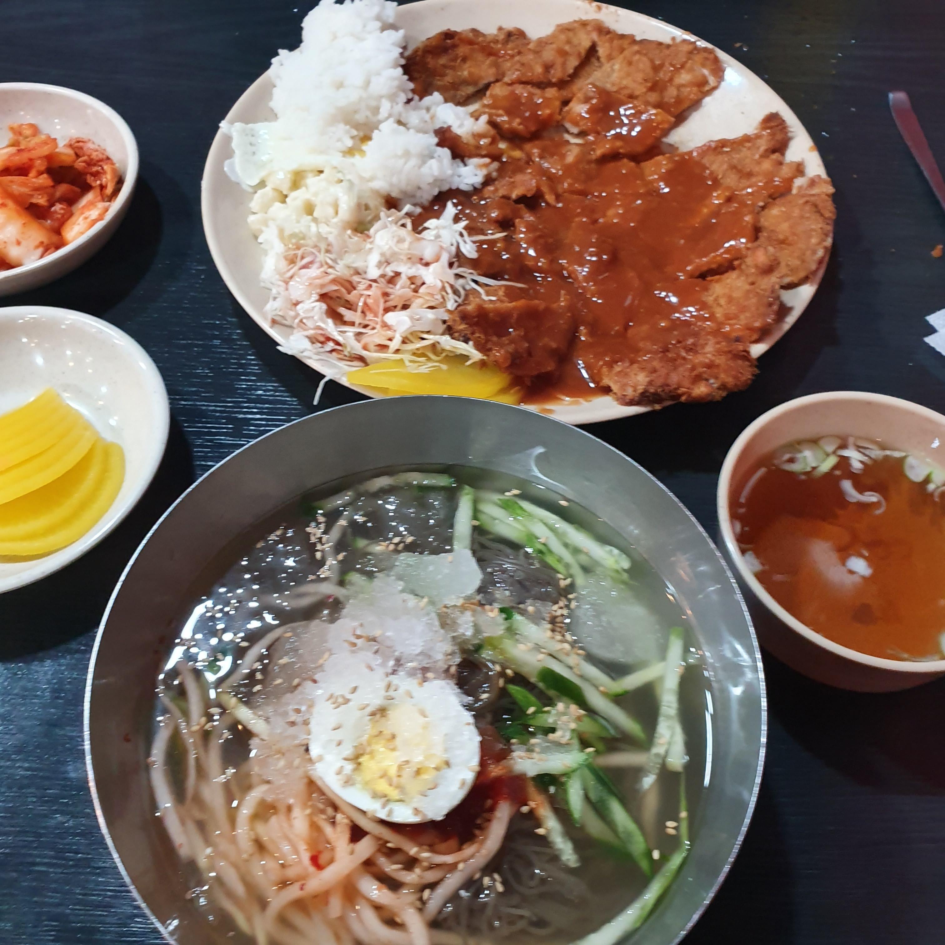 원래 물냉과 돈까스 조합을 좋아하는데,