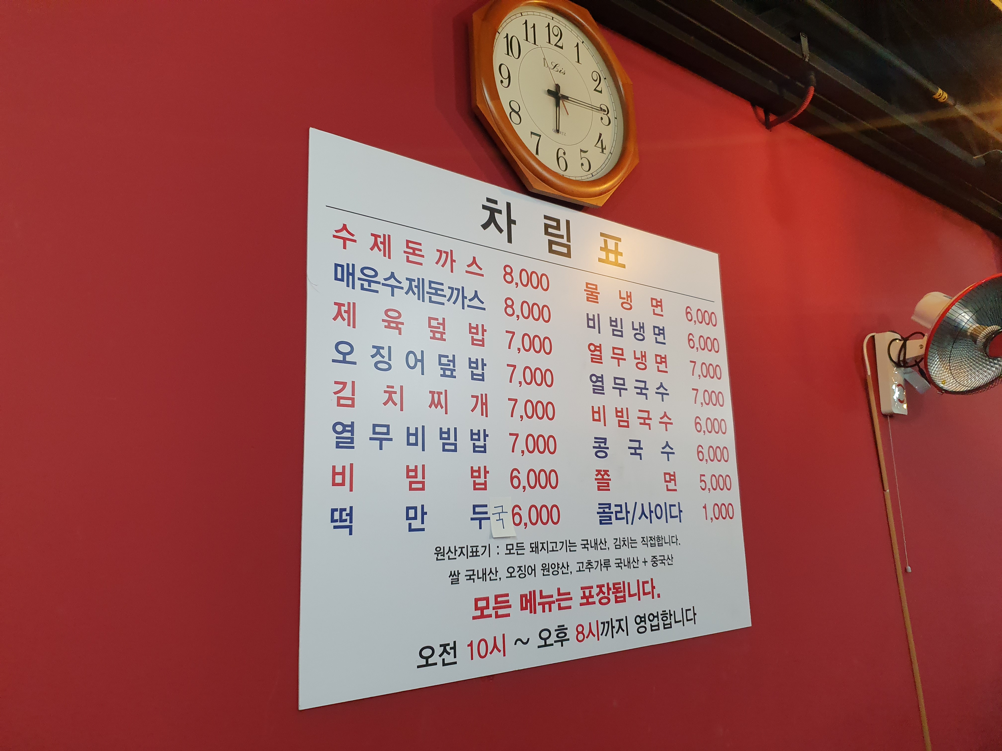 돈까스는 8,000원 그 외 메뉴도 6~7,000원으로