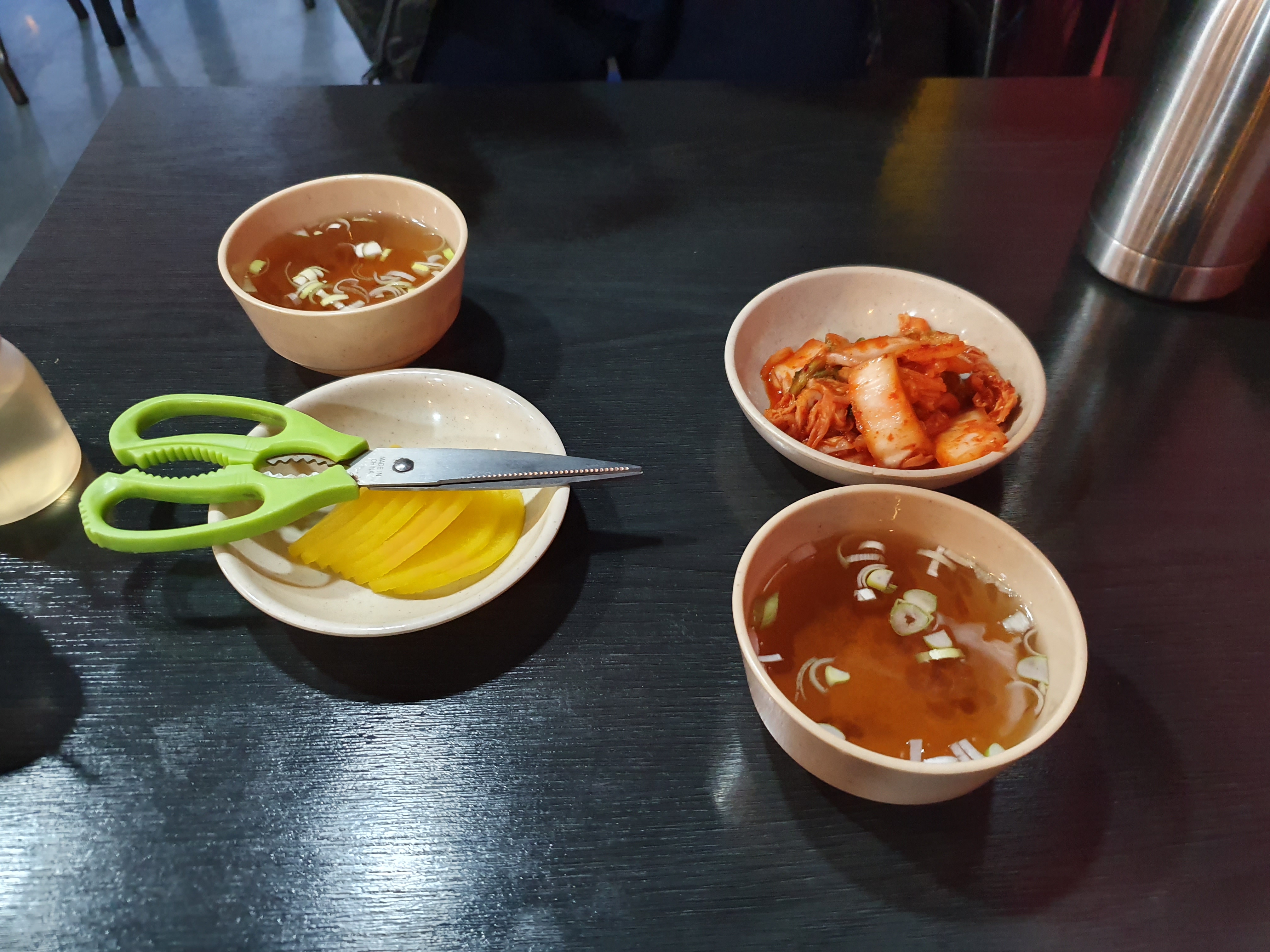 단무지, 우동국물, 직접담군 김치를 주셨습니다.