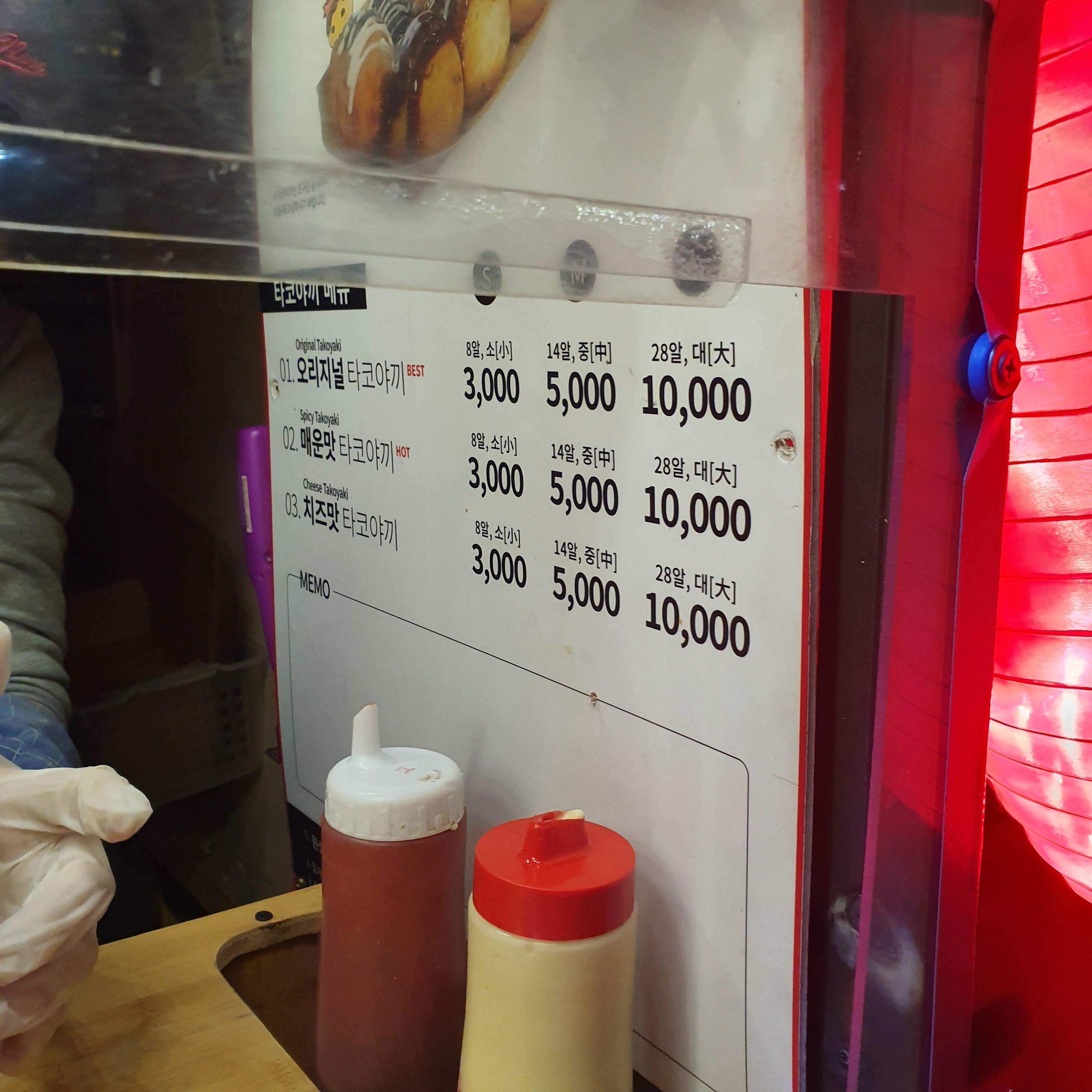 가격은 다꼬야끼 갯수에 따라 다릅니다.