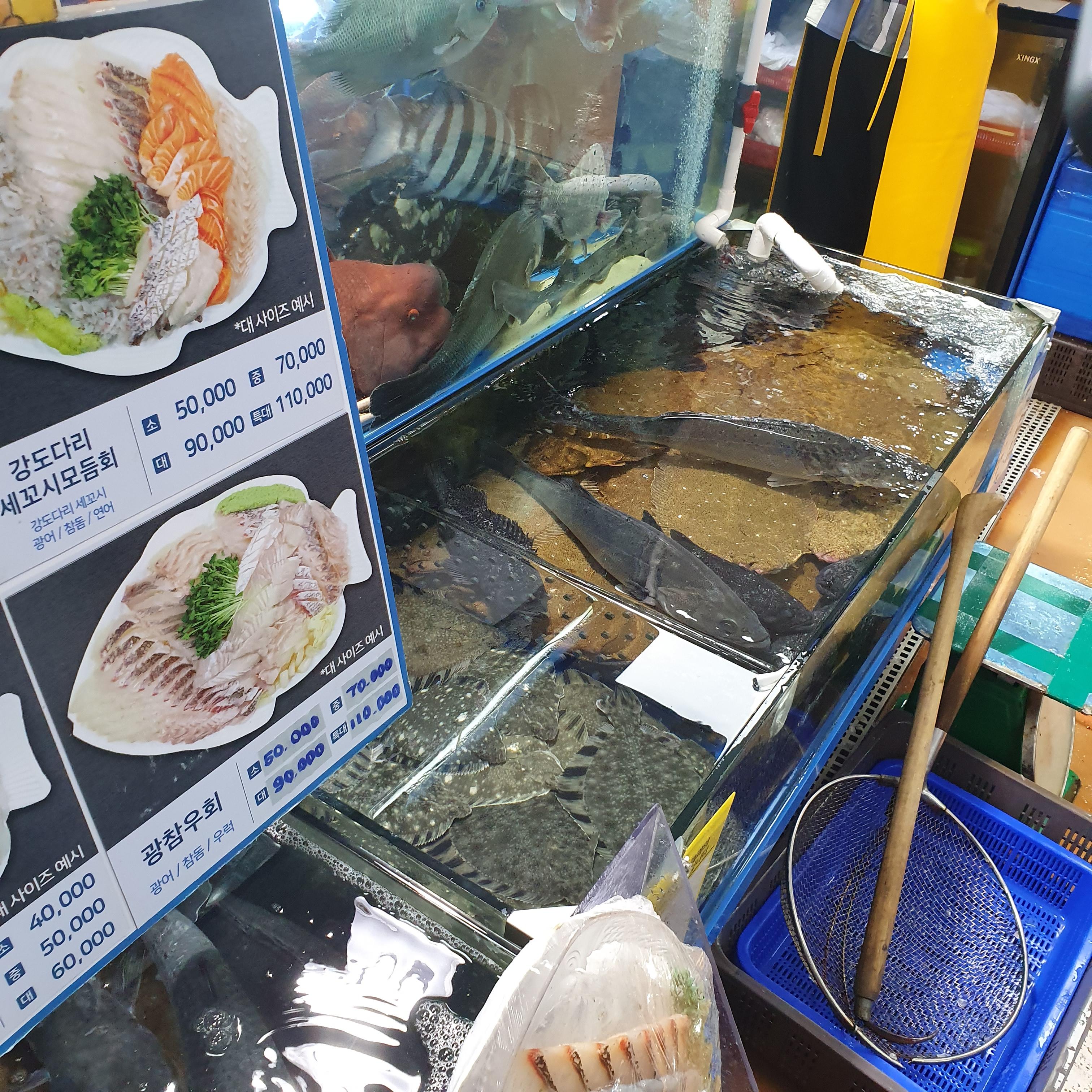 메뉴판에는 인기있는 또는 제철회가 포함된 모듬회들이 주를 이룹니다.