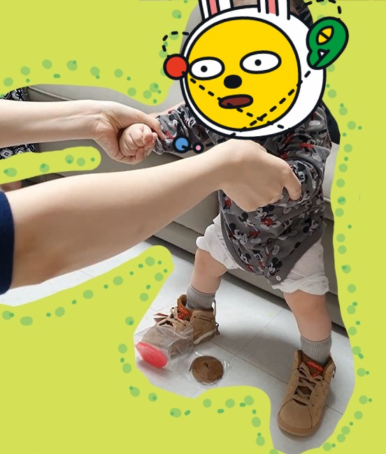 아직 돌도 안된 조카에게 신발을 신겨보았습니다.