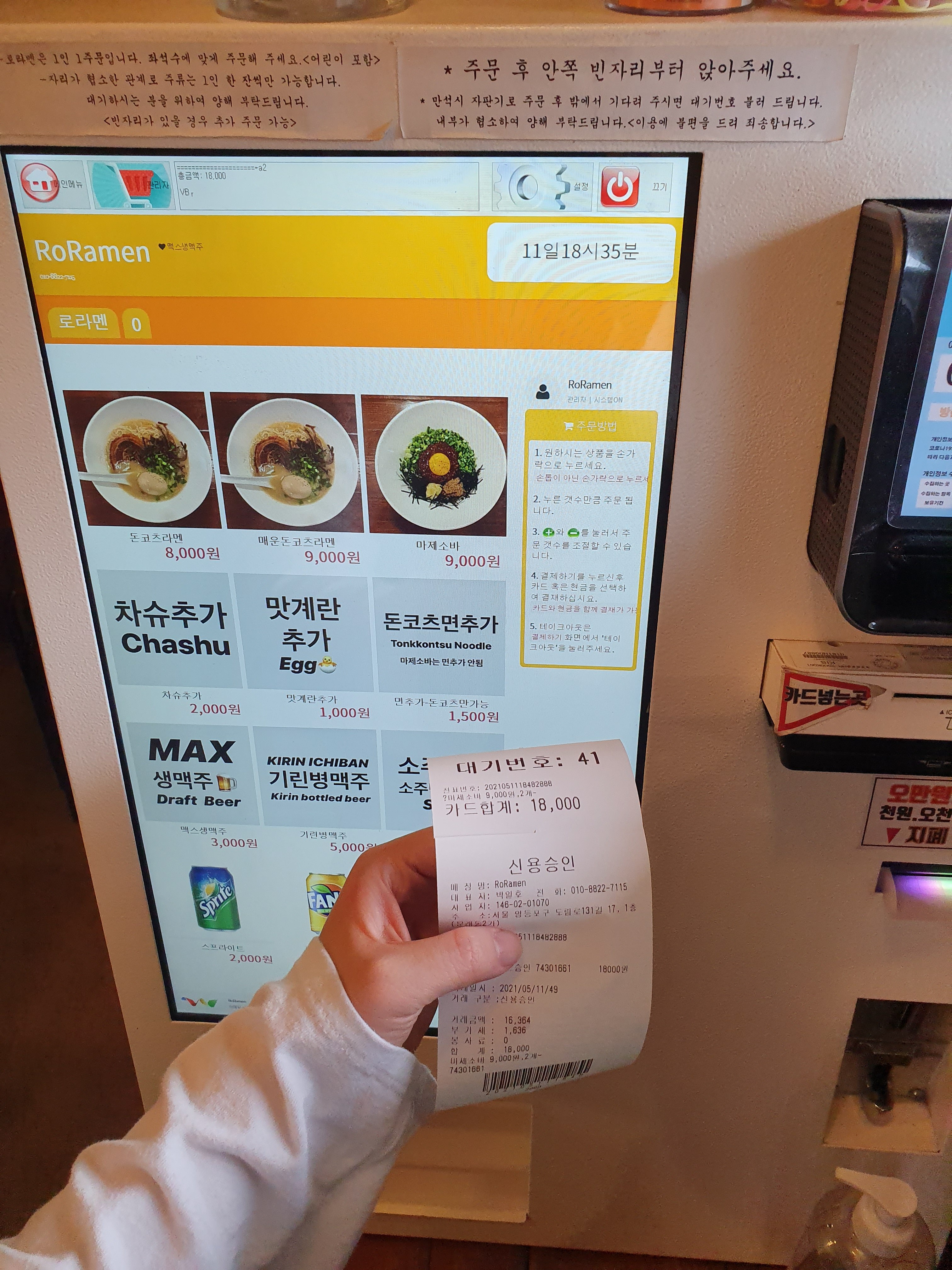 1. 가게 안에 있는 무인 주문 시스템을 이용해서 메뉴 주문을 한다.
