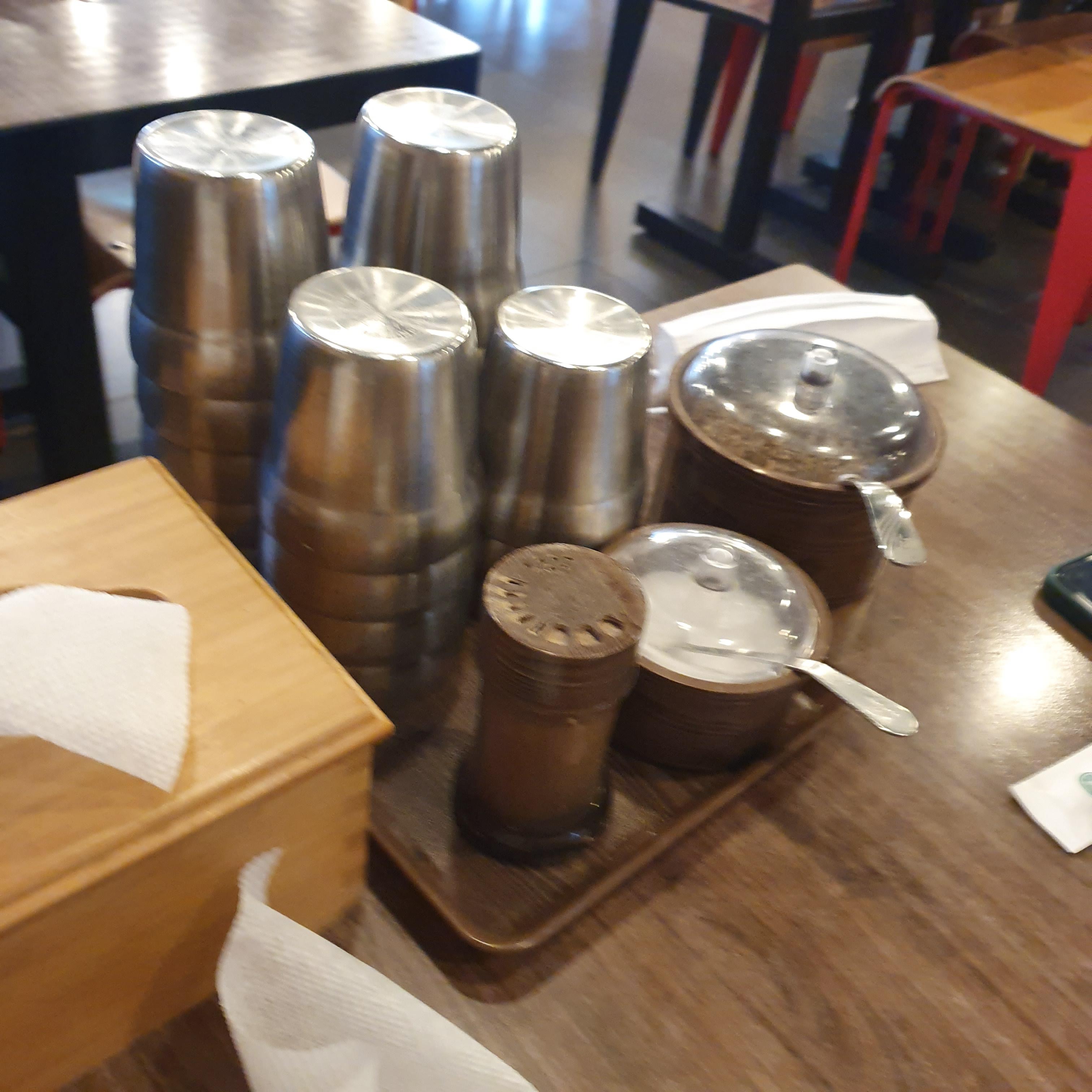 테이블에는 후추, 소금, 들깨가루가 놓여져 있습니다.