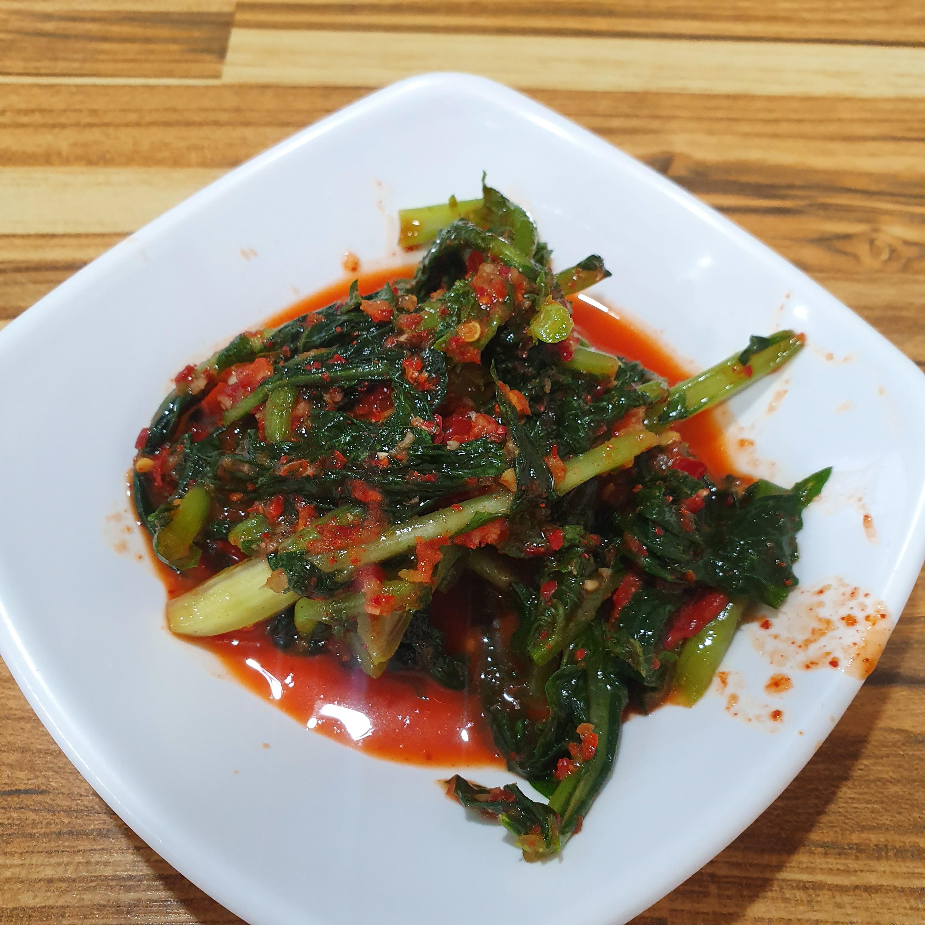 쑥갓을 얹고, 겉절이까지 곁들이면 정말 맛있습니다.