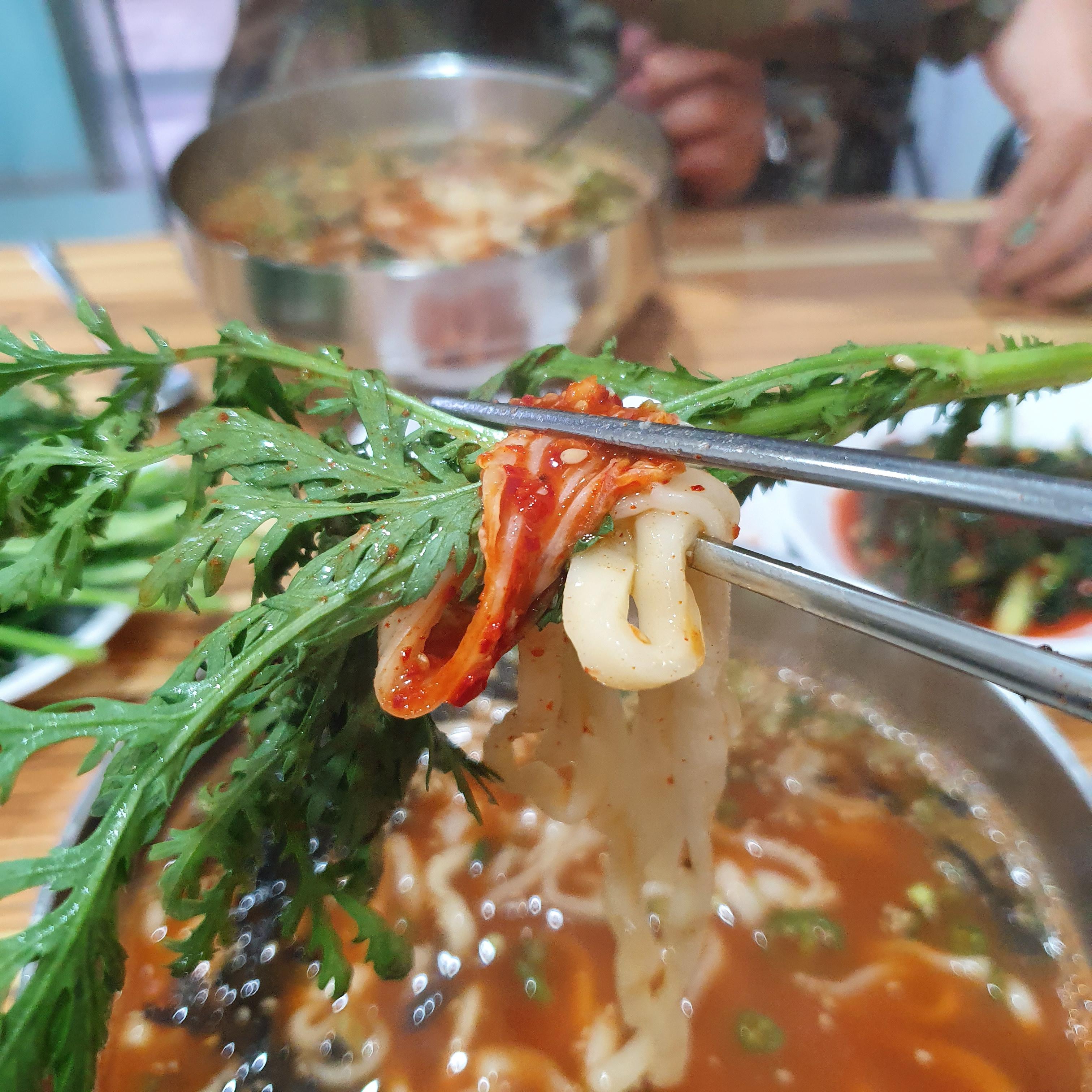 얼큰 칼국수를 먹을 때 쑥갓을 곁들여 먹으면,